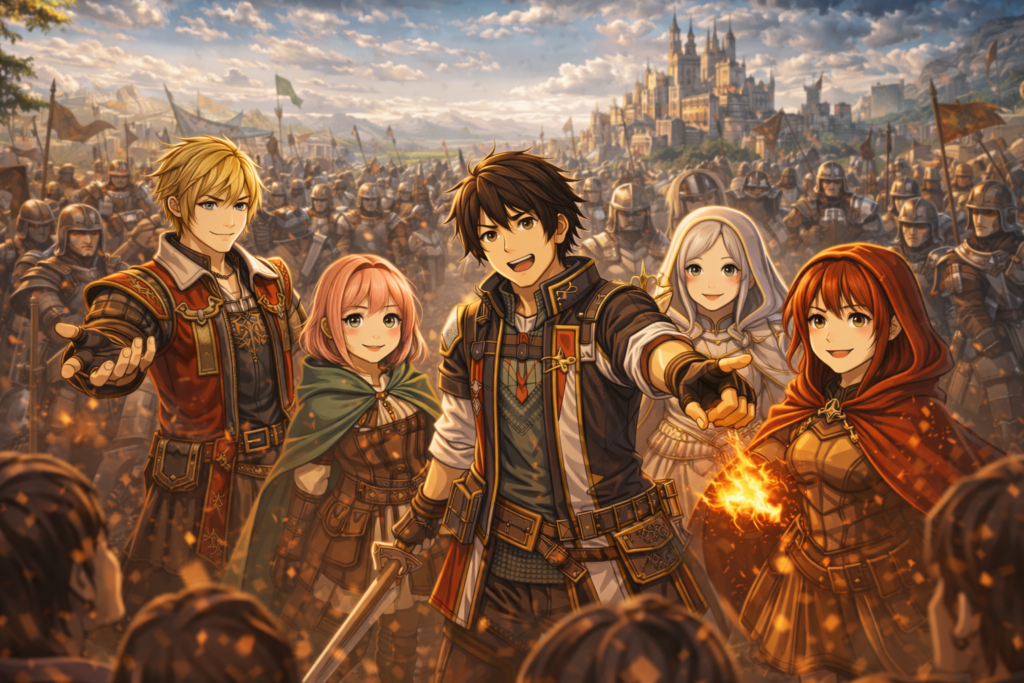 登場キャラクターは個性豊かで、それぞれにしっかりとした背景や役割があります。仲間として加わるキャラも多く、自分の好きなメンバーで編成できる楽しさがあります。ただし、一部キャラの掘り下げが少なく、印象が薄くなりがちな点は惜しいポイントです。それでも主要キャラの魅力は十分で、編成を考える楽しさにもつながっています。
