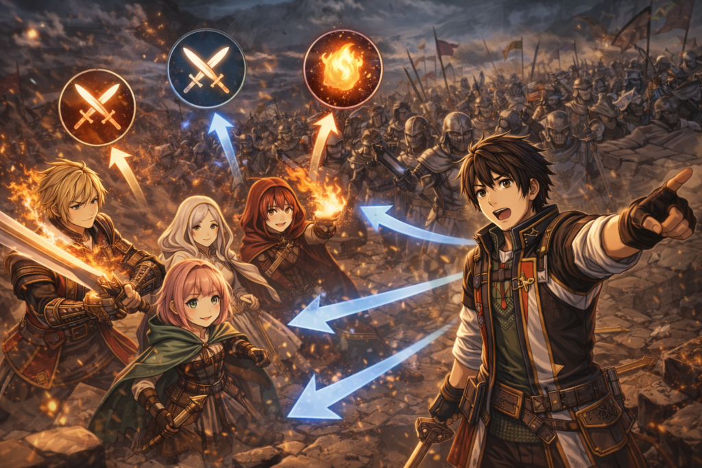例えば、キャラごとの細かい行動を直接指示できないため、「なぜこの行動をしたのか分からない」と感じることがあります。また、士気(モラル)や陣形、敵との位置関係など複数の要素が戦闘結果に影響するため、単純にレベルを上げるだけでは勝てない場面も多く存在します。