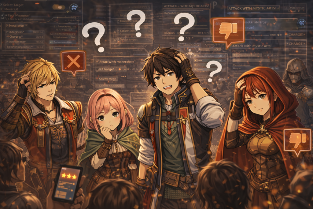 このゲームは、普通のRPGとは違い“考えて勝つ楽しさ”が詰まった少しクセのある作品です。だからこそ、ハマる人はとことんハマる一方で、合わないと感じる人がいるのも事実。