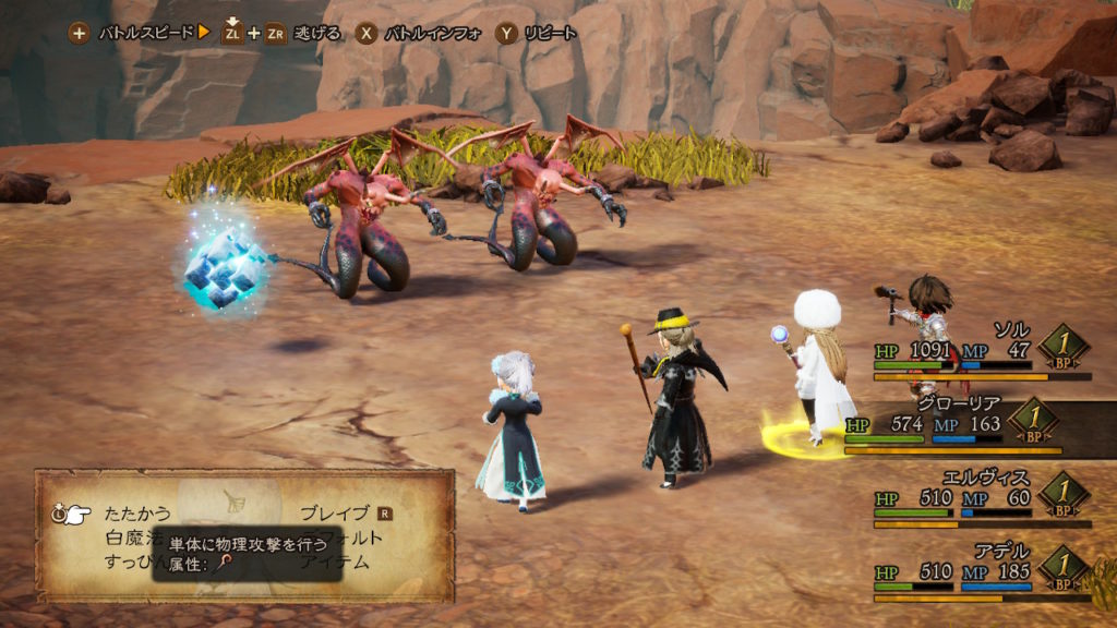 ブレイブとデフォルトを使用するタイミングをシビアに考えながらのコマンド選択は楽しくて仕方ないです。