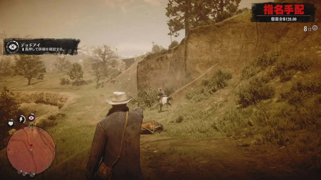 敵とのバトルにおいて非常に有効なシステムとなります。このデッドアイシステムはストーリーを進めることで徐々に拡大していきます。