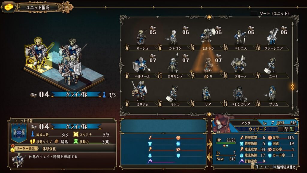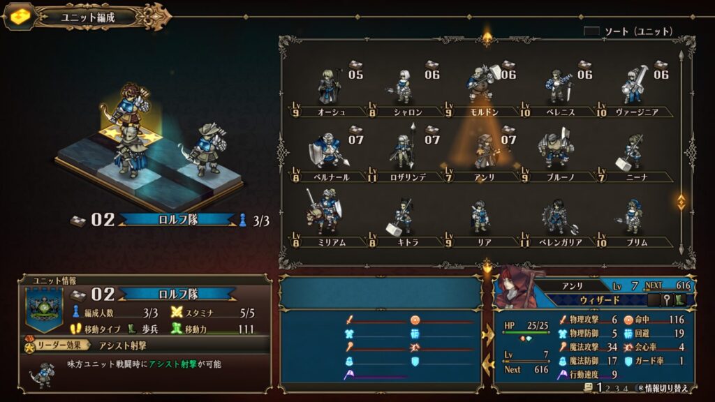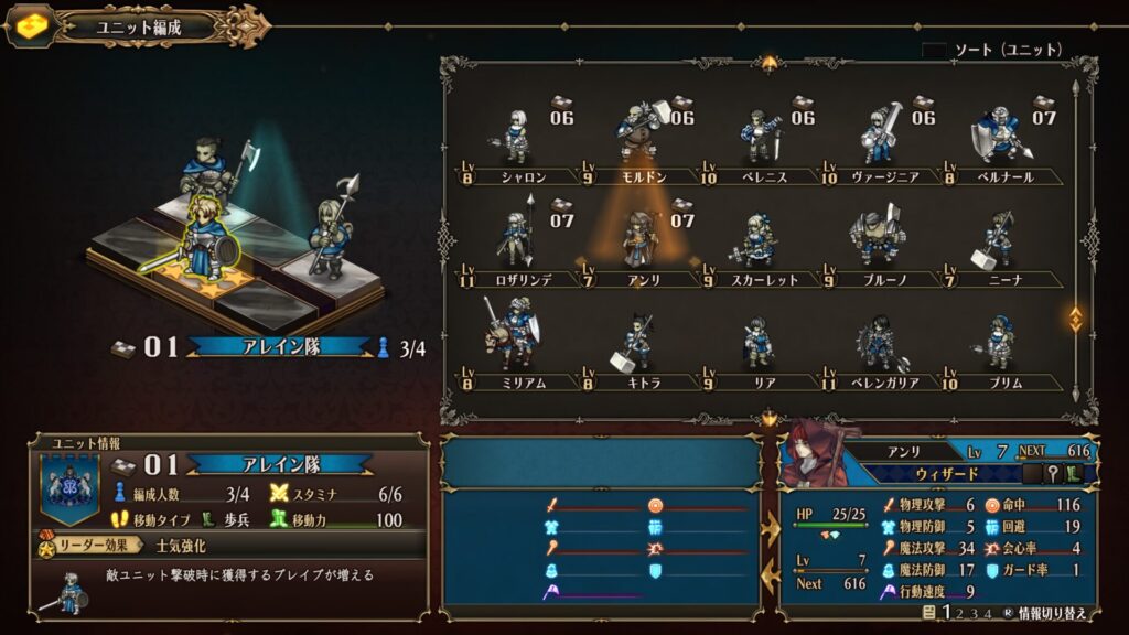- キャラクターのカスタマイズ要素が豊富で、自分好みの部隊編成を組む楽しさがあります。