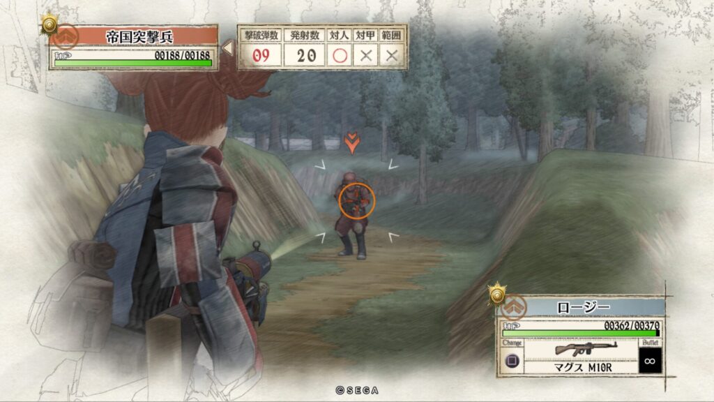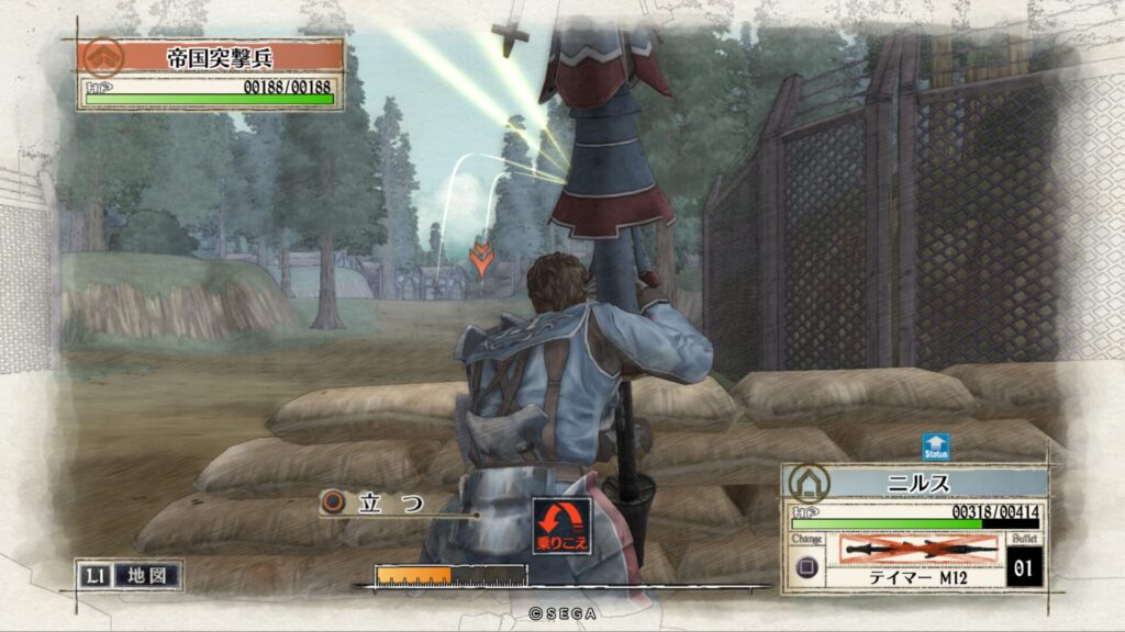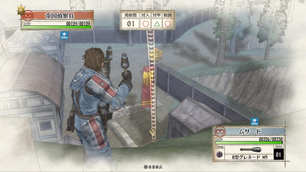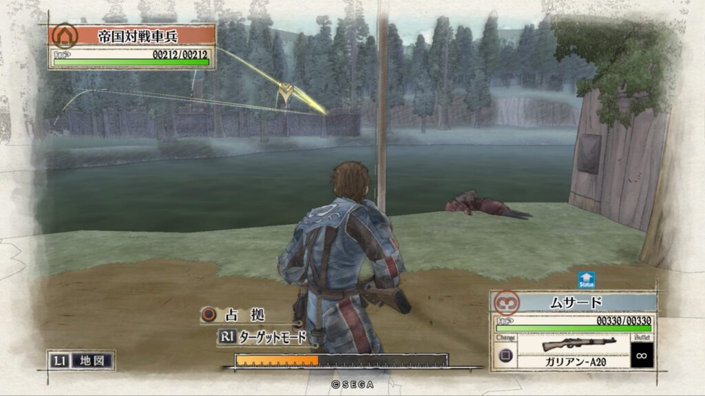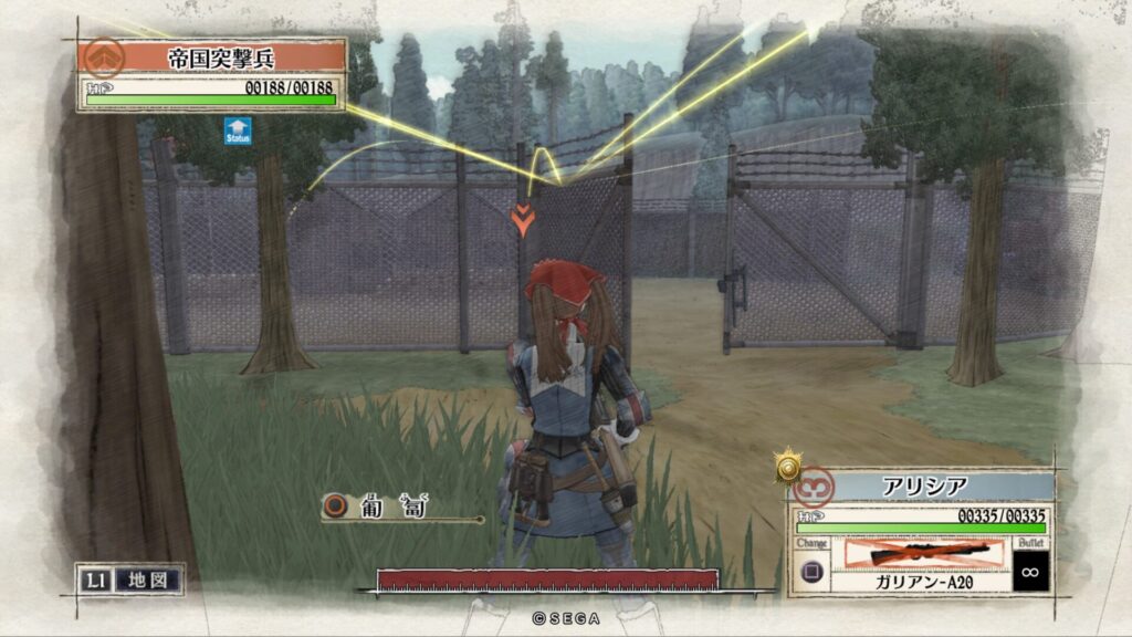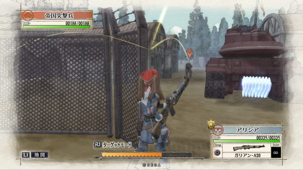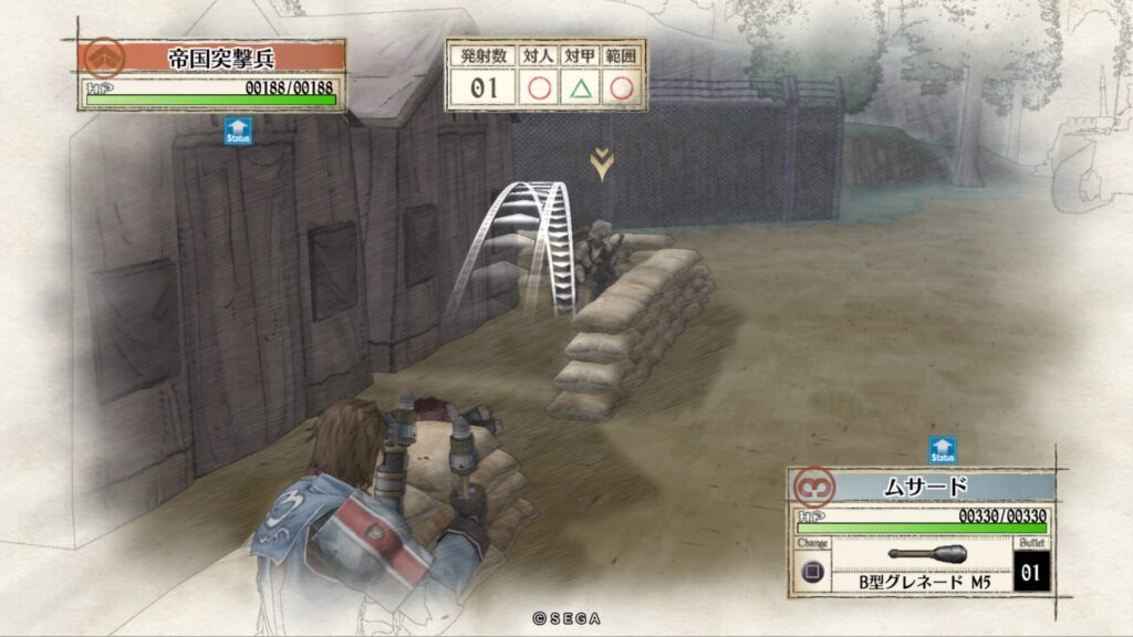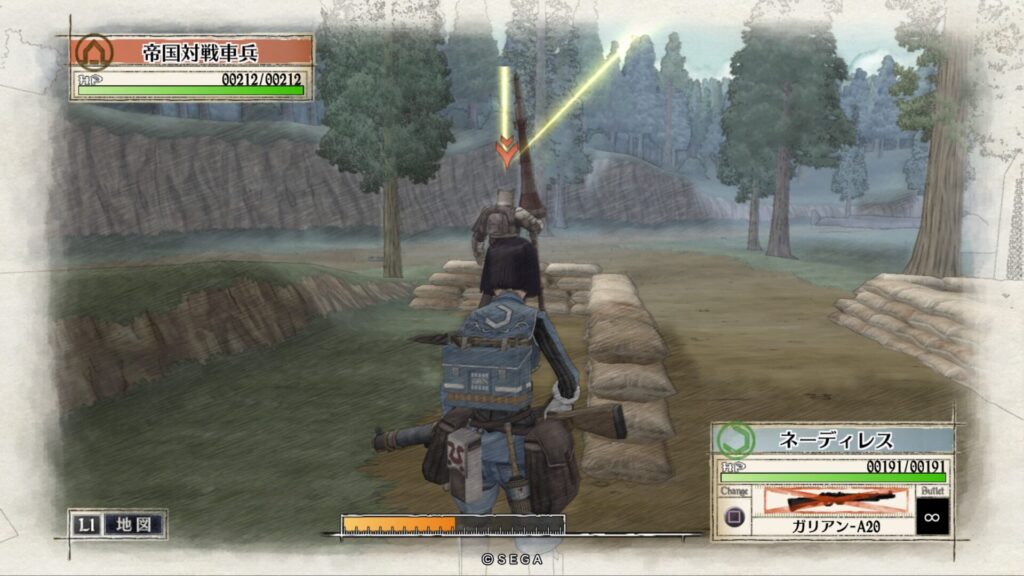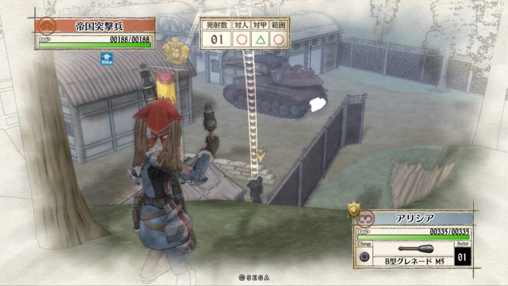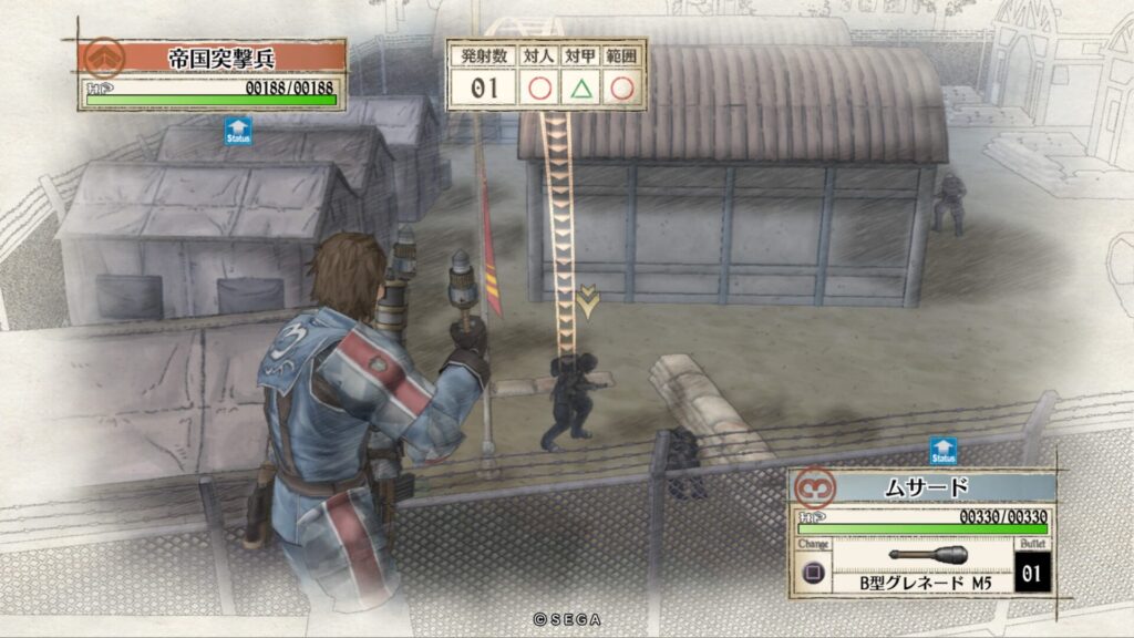 敵拠点にいる帝国突撃兵を手榴弾で倒します。こちらも一度で倒せない時はもう一度攻撃をして倒します。