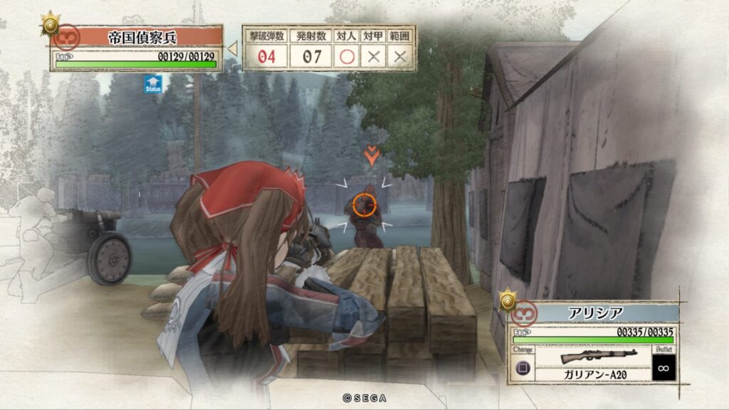 敵本拠点にいる帝国偵察兵はしゃがんでいるので手榴弾が有効です。