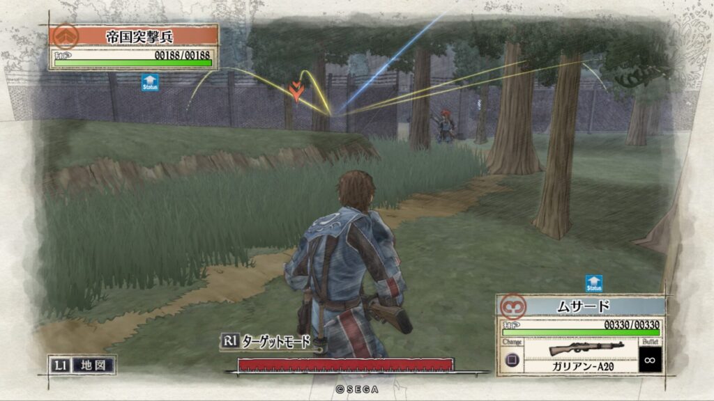 木の陰にいるので見えにくいですが位置取りに注意しながら帝国突撃兵を倒します。
