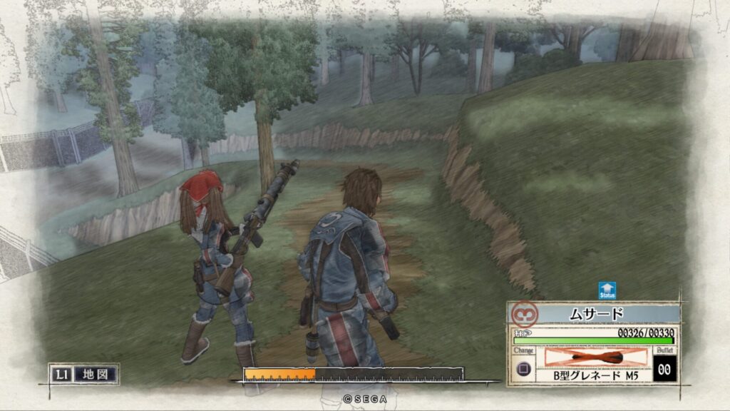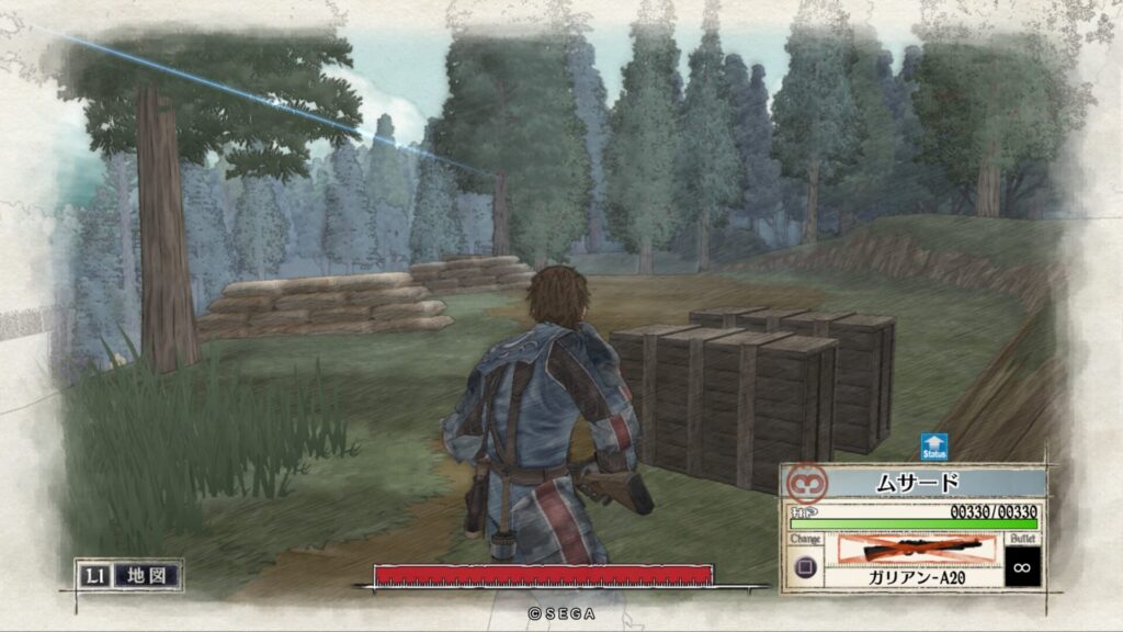 攻略の基本ですがメインの道路は敵が待ち伏せているので一切使わずに森の中を抜けていくルートを通ります。