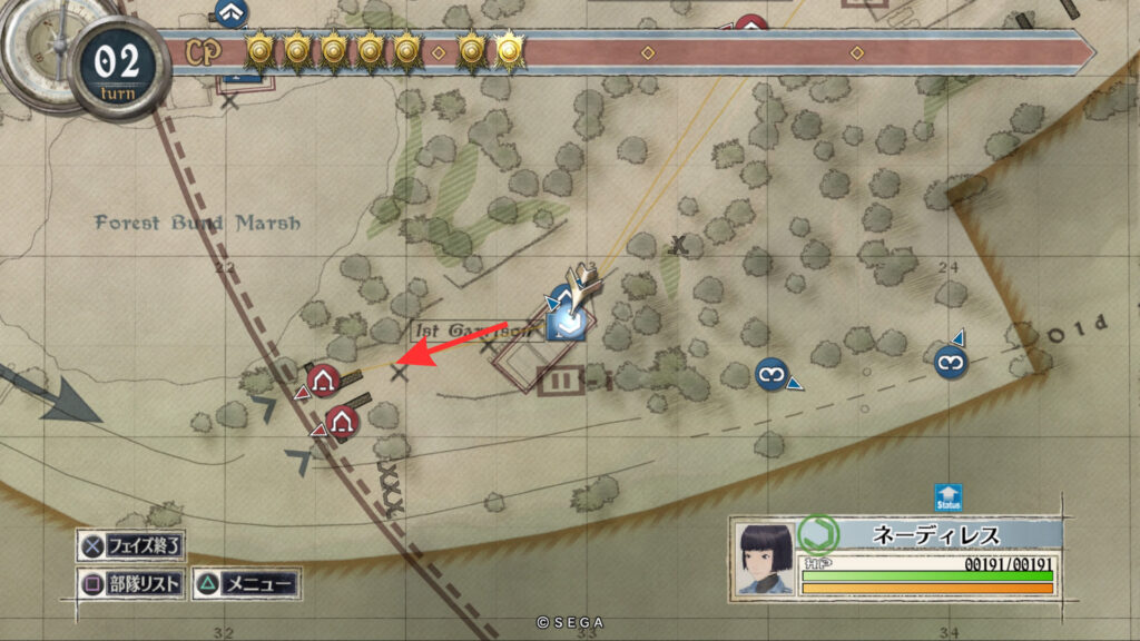 帝国軍の補給部隊は森の東部に位置しており強固な防御ラインが敷かれています。