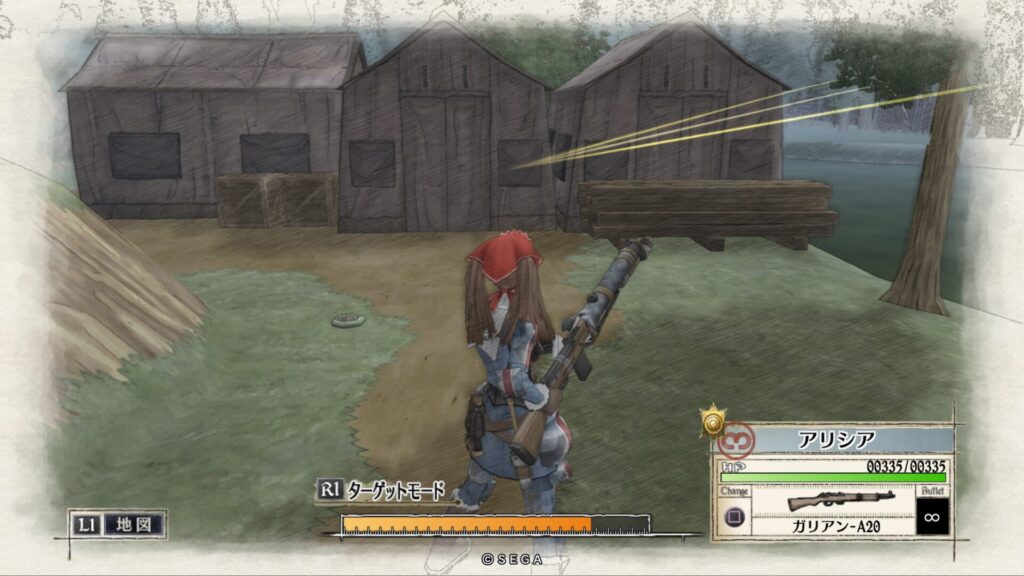 アリシアと同じように敵本拠点にいる敵を丘の上から攻撃をします。