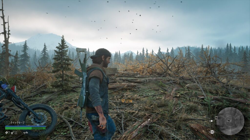 殺伐とした場所を颯爽とバイクで走り去る姿はかっこいいの一言です。序盤のサバイバルを生き抜いて中盤以降もデイズゴーンを楽しんで下さい。
