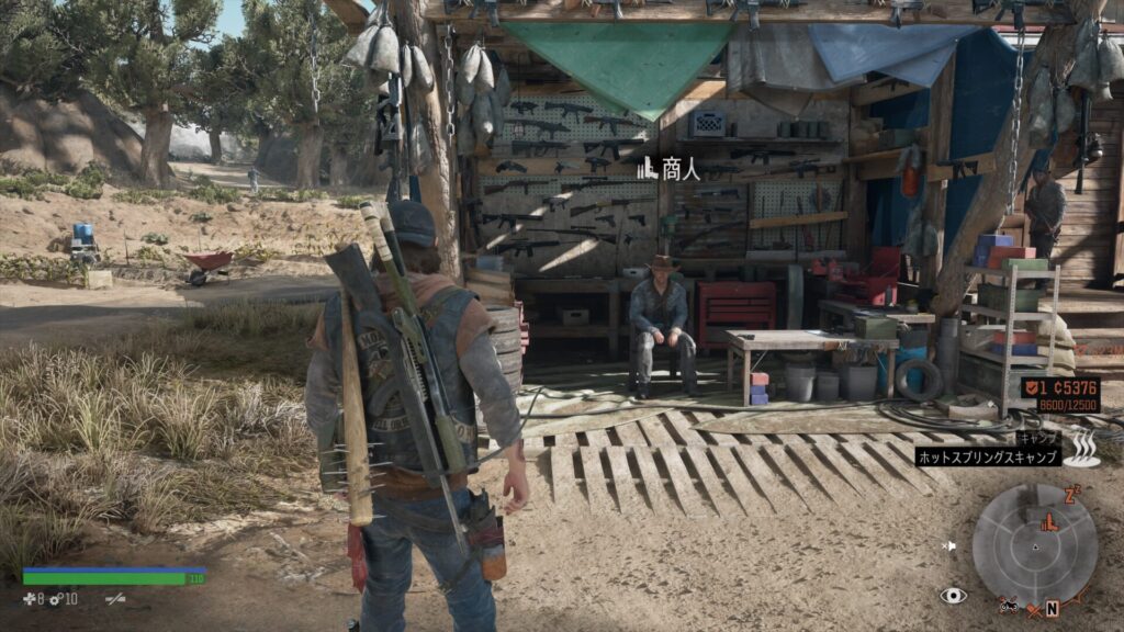 序盤でのストーリーミッションでホットスプリングスキャンプに行く機会があるので忘れずに武器を購入しておきましょう。