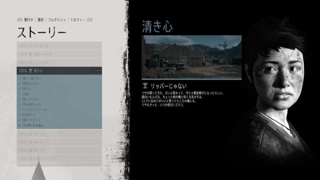 もうひとつのクリア後の楽しみ方として特におすすめなのが、物語の深掘りです。『Days Gone』は単なるサバイバルアクションではなく、人間関係や過去の出来事が丁寧に描かれたストーリー性の高い作品です。しかし、プレイ中は戦闘や移動に意識が向きがちで、細かな背景まで理解しきれないことも多いでしょう。