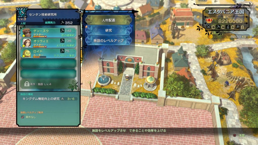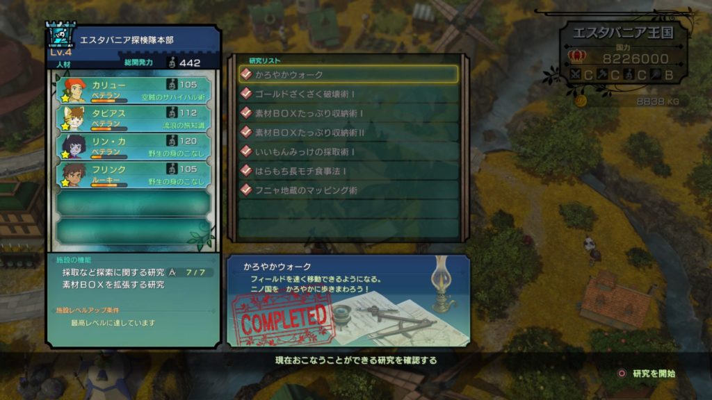 ストーリーや冒険を進めるためには施設の研究は必須となります。