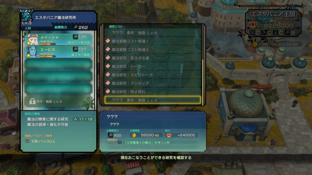 エスタバニア王国の主要4大施設ですが、序盤でこの魔法研究所の重要性を理解していないと非常にもったいないです。