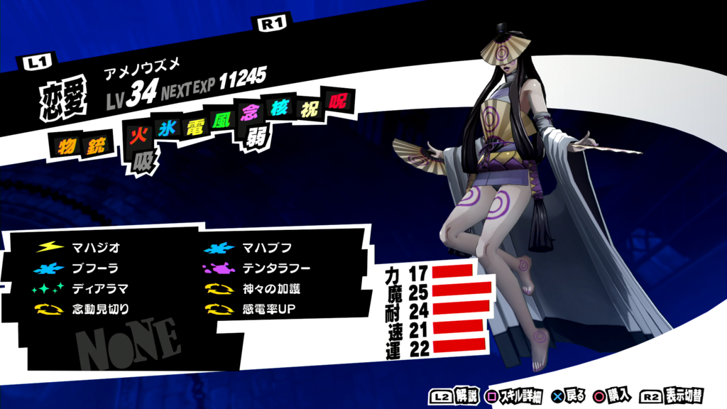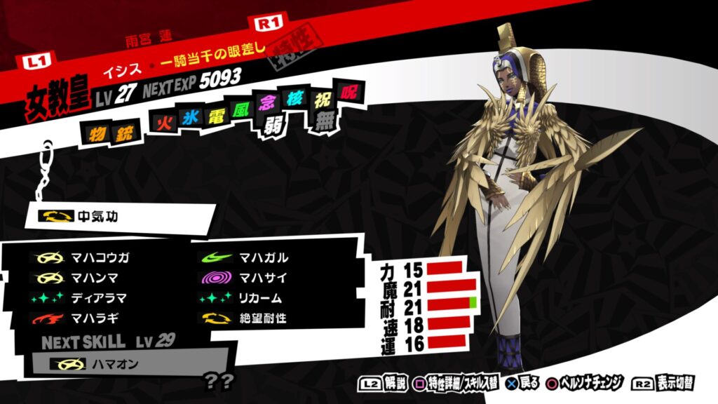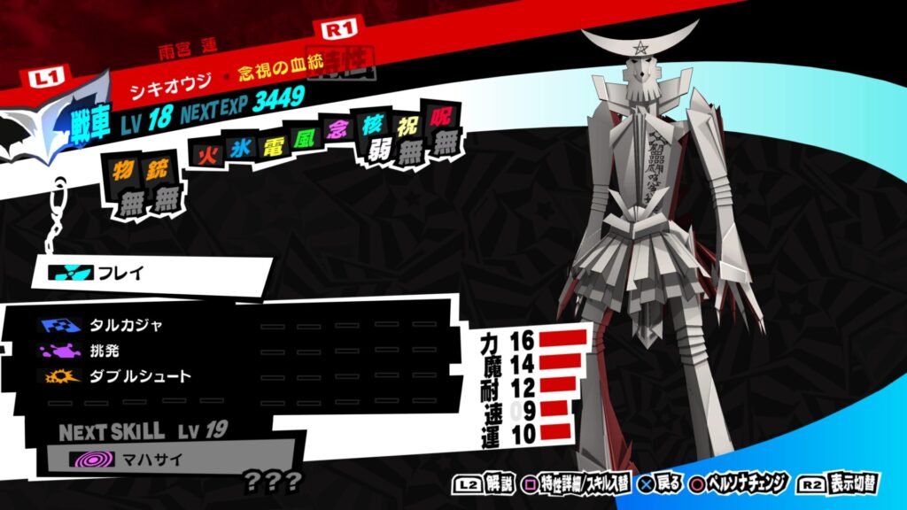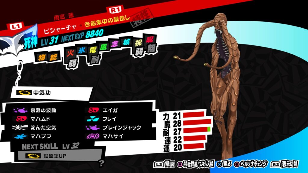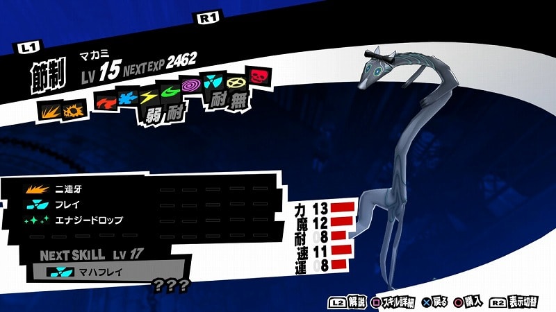 圧倒的な魔力でシャドウを駆逐する優秀なペルソナとなります。念動属性や呪怨属性の魔法スキルを覚えることができます。