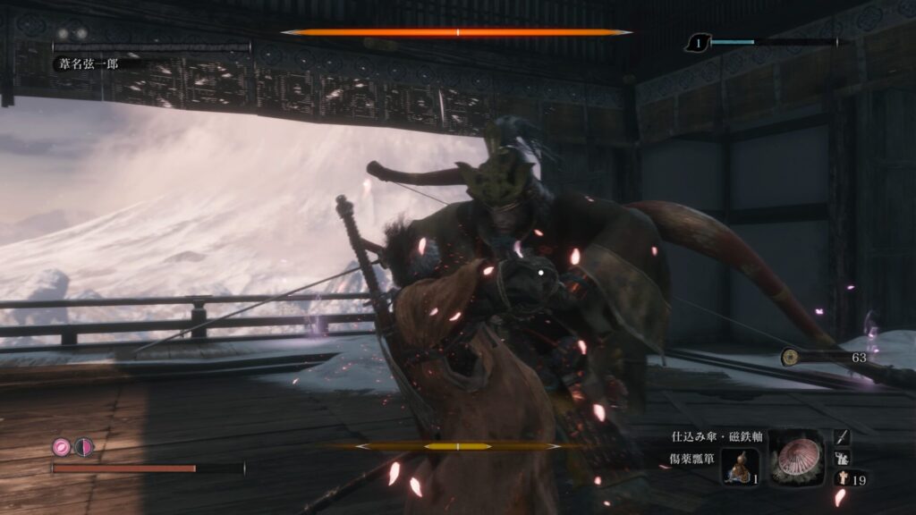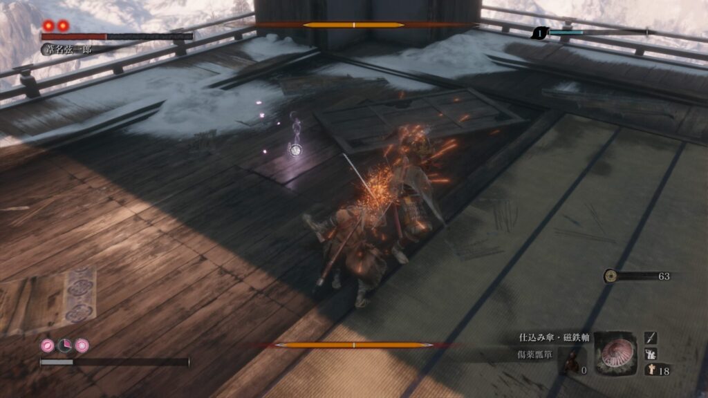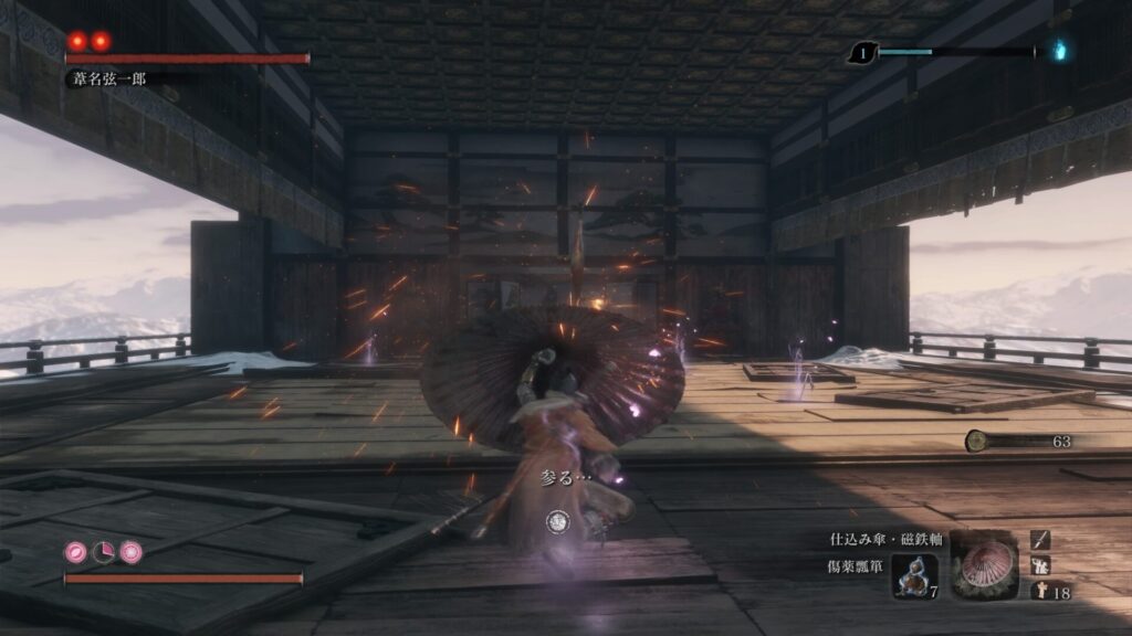 第2段階の葦名弦一郎は雷返しでカウンターを狙うのが一般的な攻略法となります。