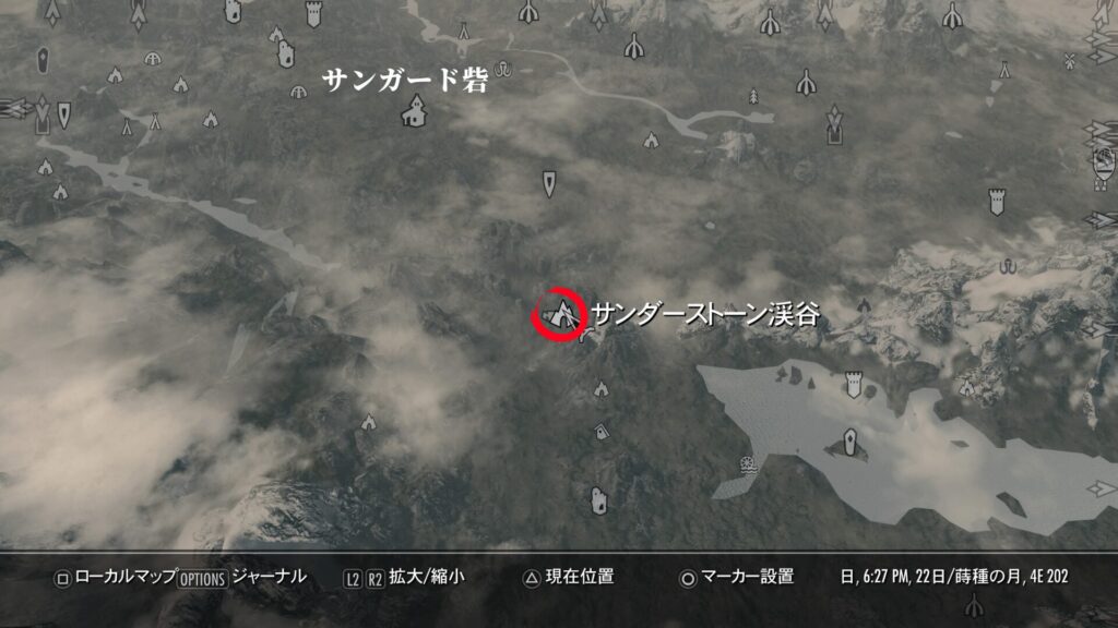 | ファルクリース要塞 | サンガード砦南東 | サンダーストーン渓谷 最奥シャウト碑文前のテーブル |