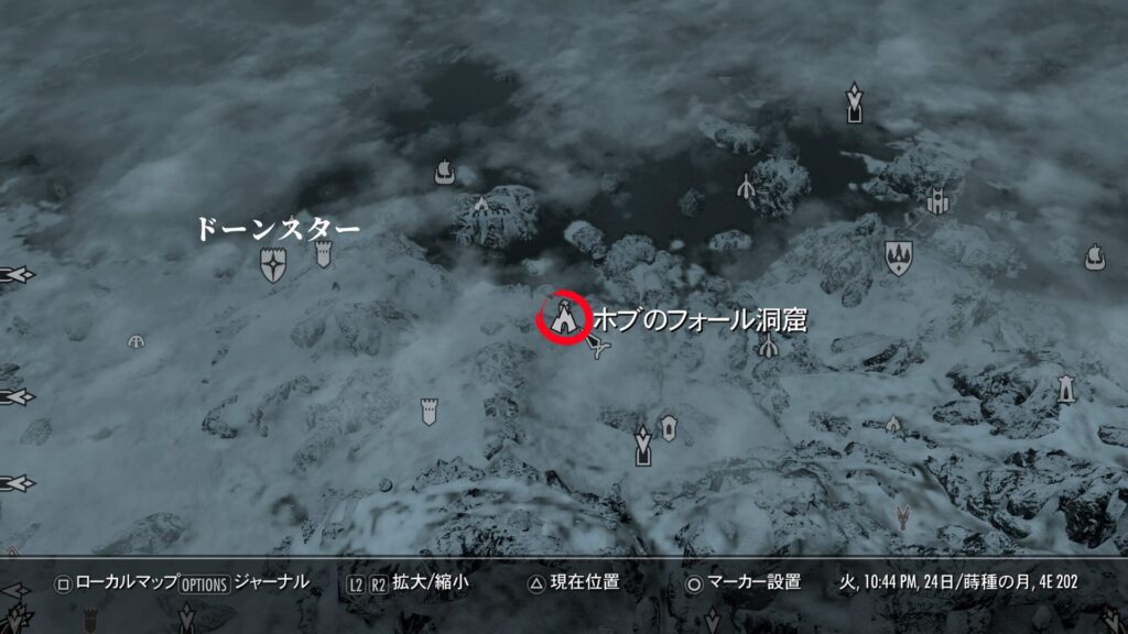 | ウィンターホールド要塞 | ユングビルドの南東 ドーンスターの東 | ホブのフォール洞窟 吊り橋の真下にある部屋 |