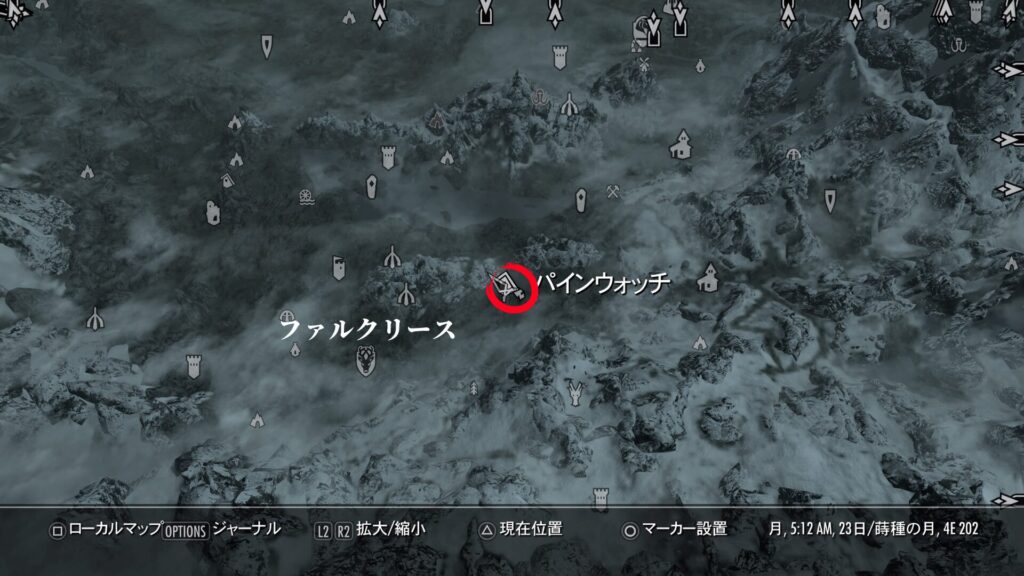 | ファルクリース要塞 | レイクビュー邸の南 | パインウォッチ パインウォッチ山賊の聖域 階段の上の右手の精鋭クラスの錠前付き扉の部屋 |