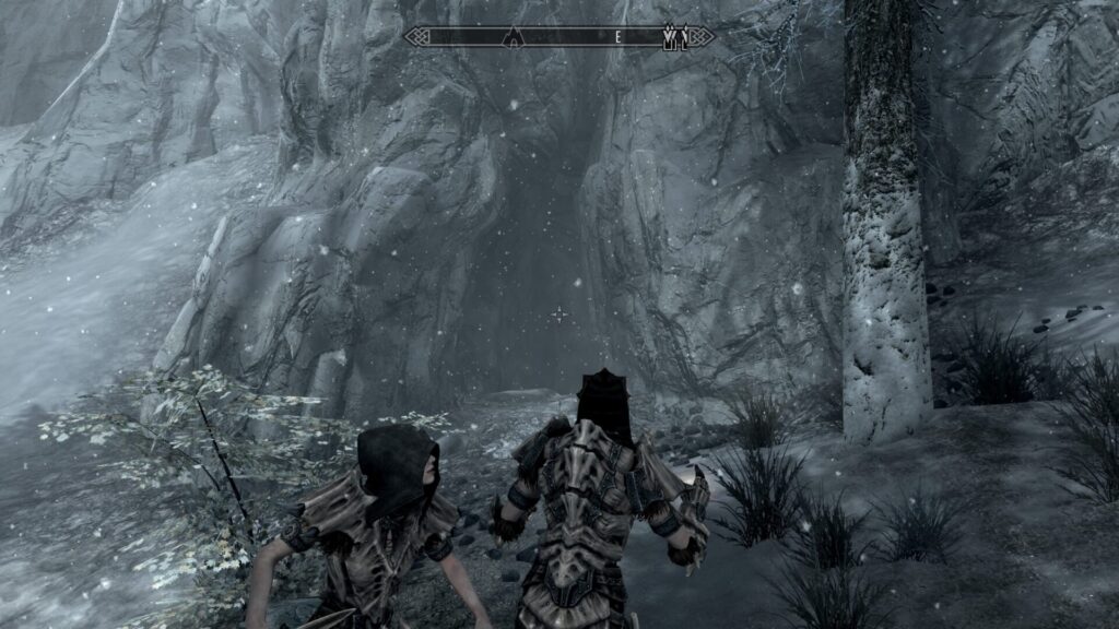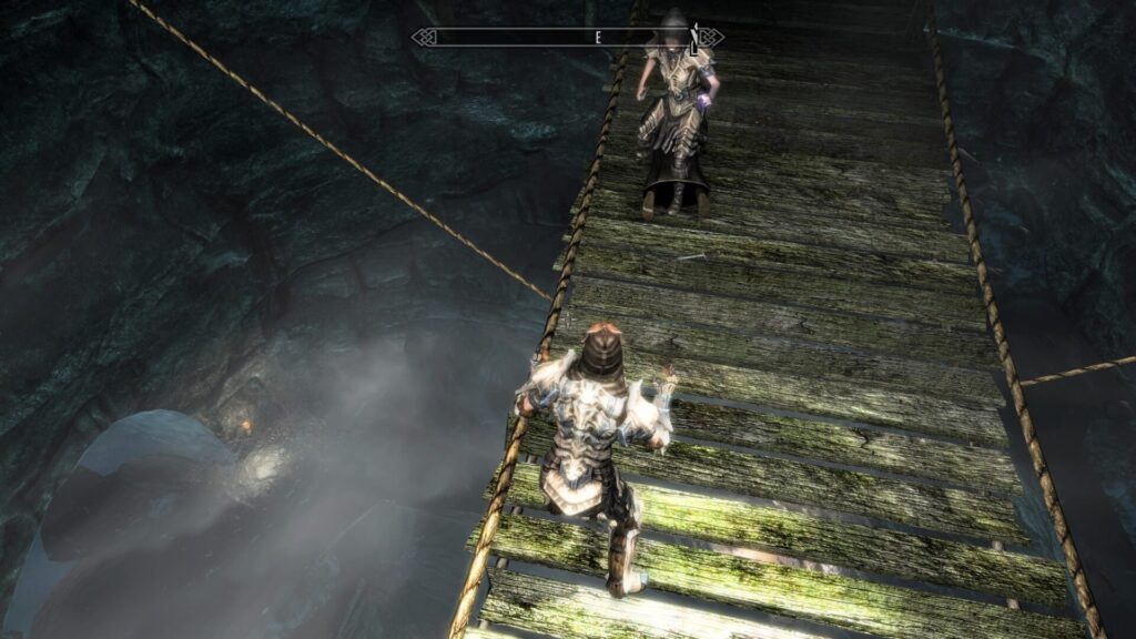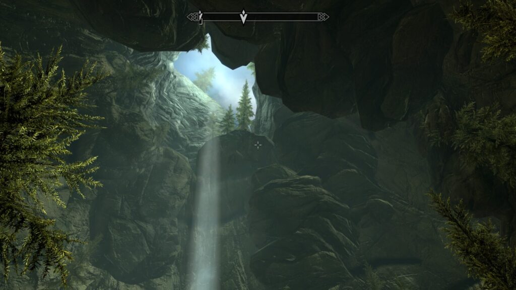 道なりに進むと「カイネの安らぎ」のシャウト碑文に到達しますが、近づこうとすると落とし穴に落とされます。