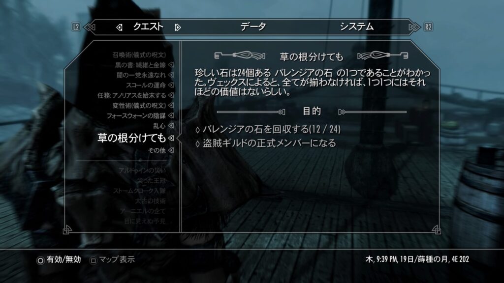 | 盗賊ギルド | ヴェックス | 珍しい石(バレンジアの石)を全24個回収し王冠を復元する |