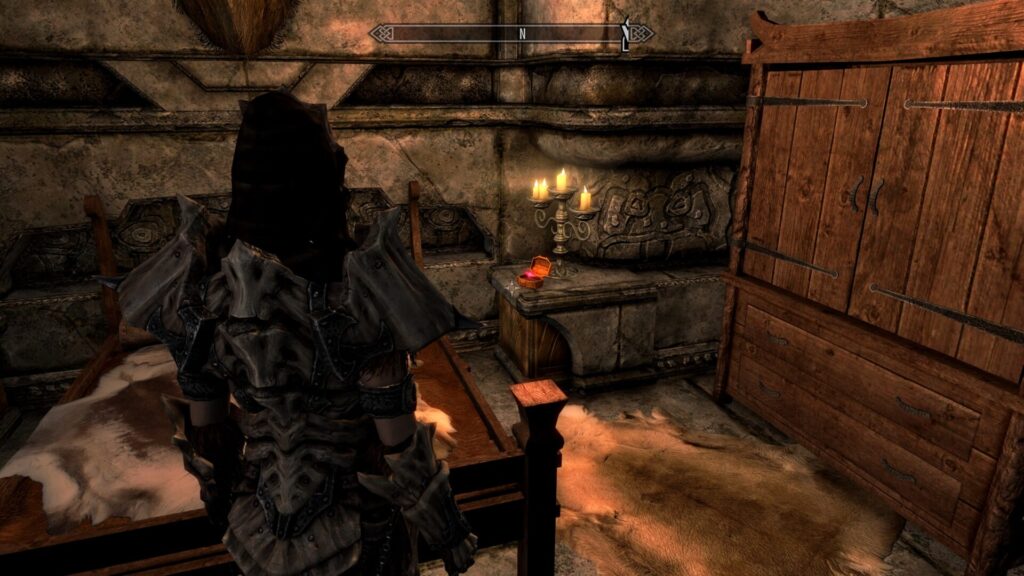 | ホワイトラン要塞 | ホワイトラン市内 | ドラゴンズリーチ ドラゴンズリーチ首長の私室 ベッド脇のエンドテーブル |