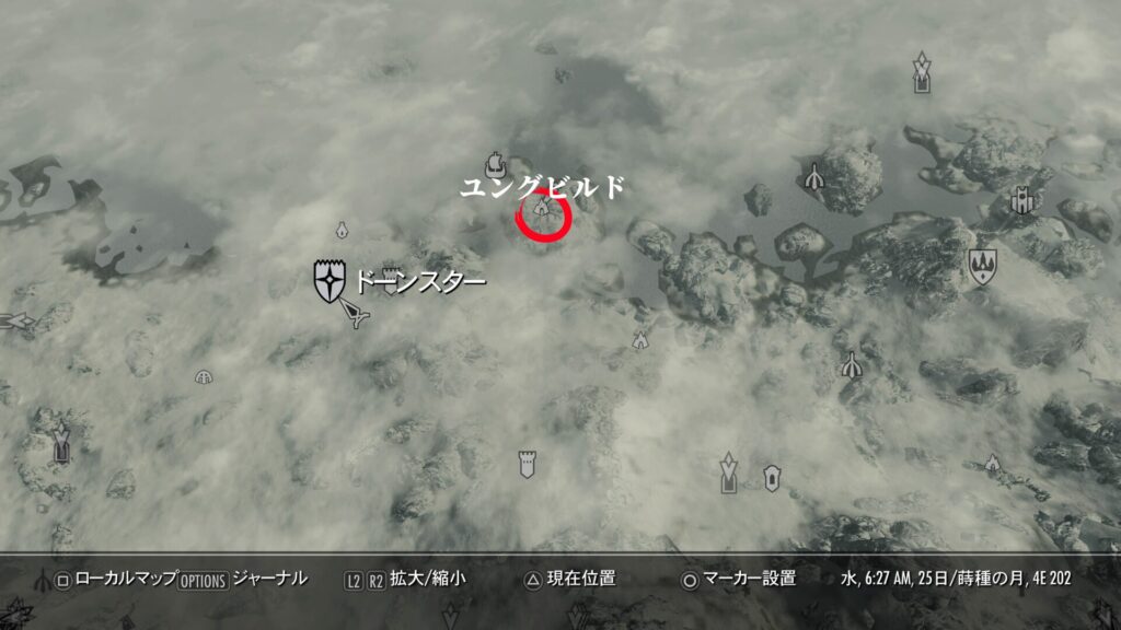 | ウィンターホールド要塞 | ドーンスター北東 ホブのフォール洞窟の北西 | ユングビルド ユングビルドの王座の間 最深部の寝室 |