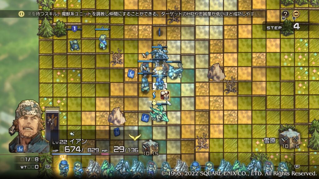 ビースト系ユニット(グリフォンやオクトパスなど)は「テイム」スキルで勧誘します。これらのユニットは人間とは異なる特徴を持っており、特定の場面で非常に強力な戦力となります。勧誘方法自体は人間と同様に、HPを削って状態異常を付与するのが基本ですが、やや成功率が低く感じることもあります。そのため、より慎重に条件を整える必要があります。ビーストは耐久力が高い個体も多く、戦略の幅を広げる重要な存在なので、積極的に勧誘を狙う価値があります。