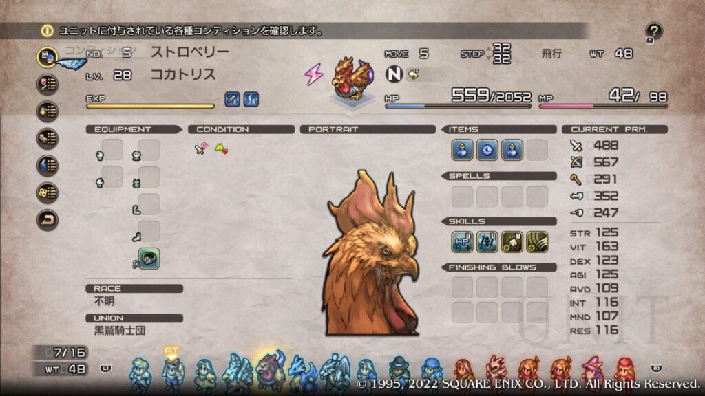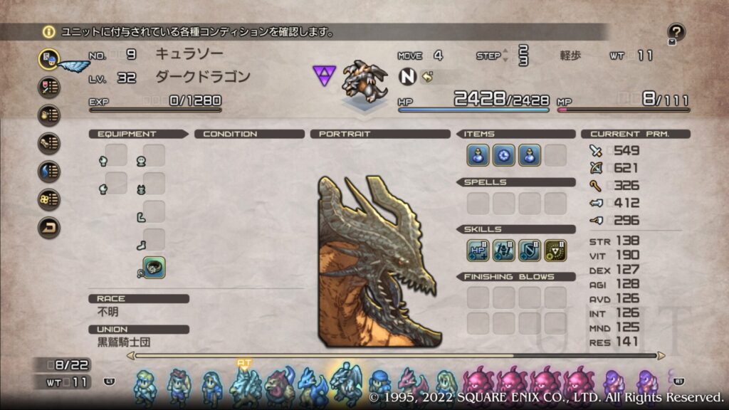 石化を付与するブレス攻撃なのですが石化の確率が思ったほど高く敵をどんどん石化していきます。使っていてとても面白くて気分が良くなるユニットです。グリフォン同様にして固有キャラの出番がなくなるくらい強力なユニットです。