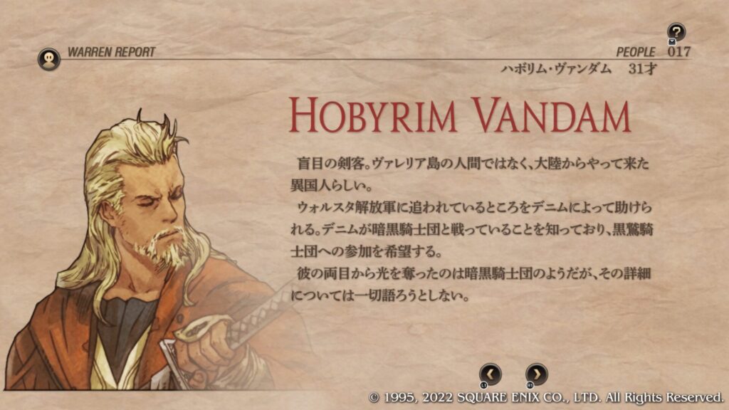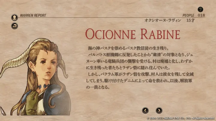 デニムのストーリーに影響しまくりのキャラとも言えます。レンジャーかバッカニアにすると圧倒的な攻撃力でバトルを謳歌します。