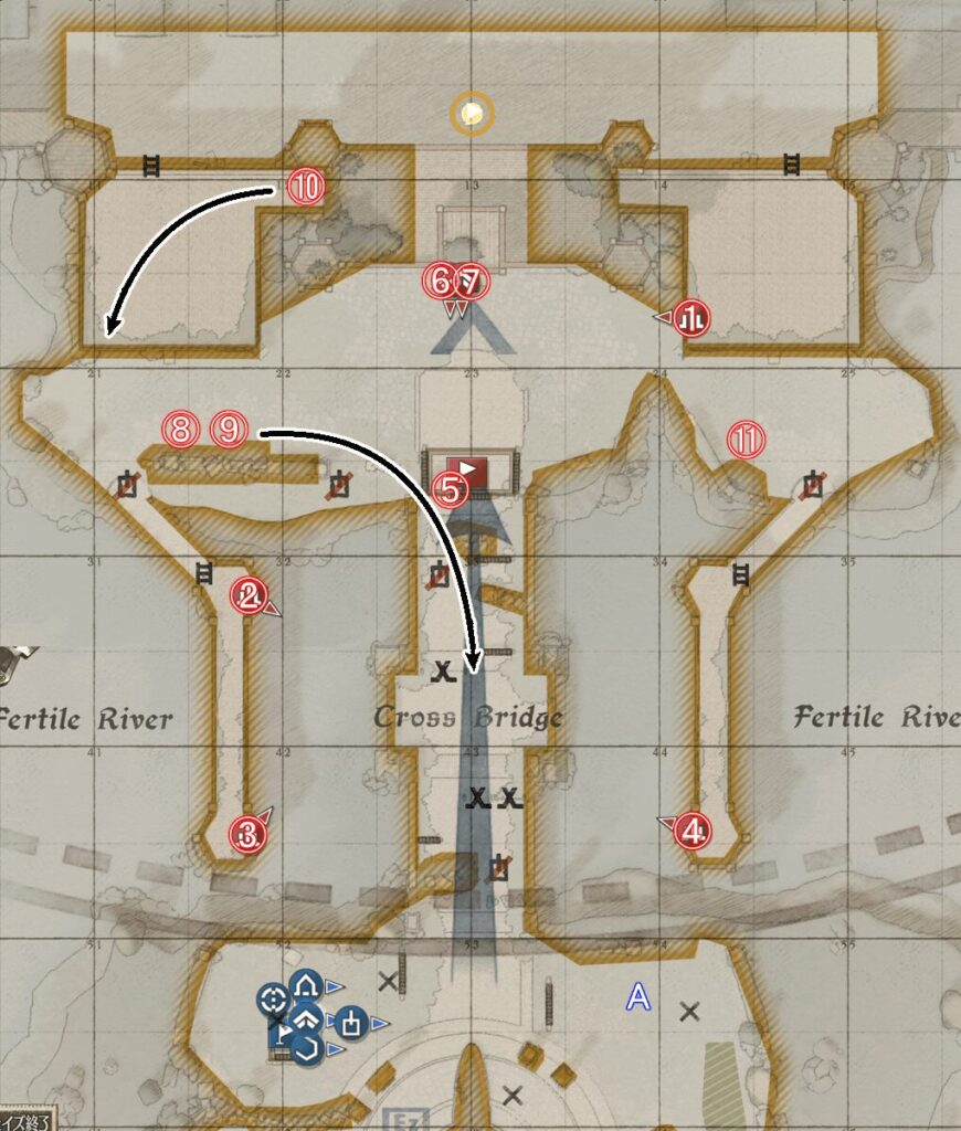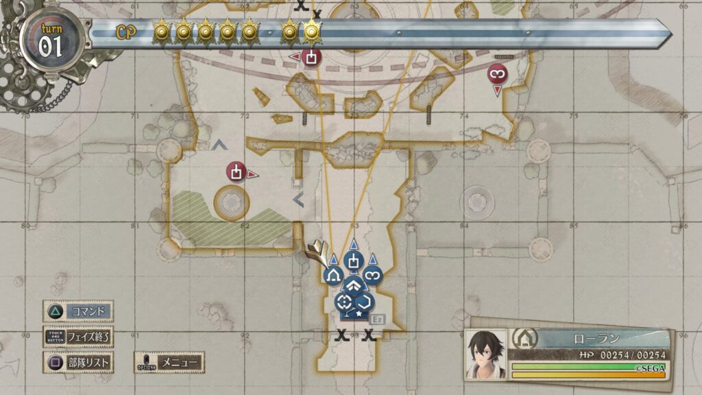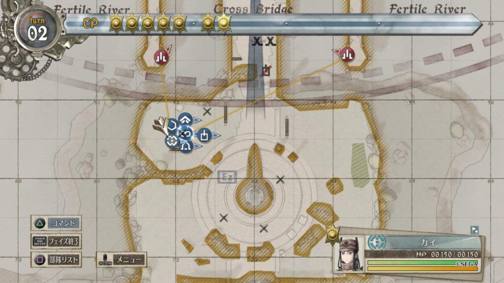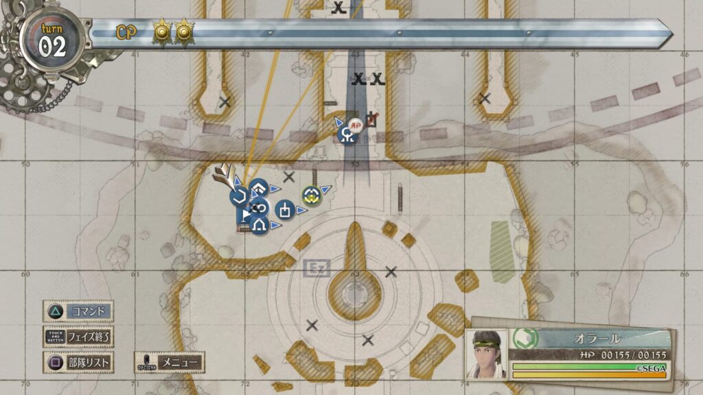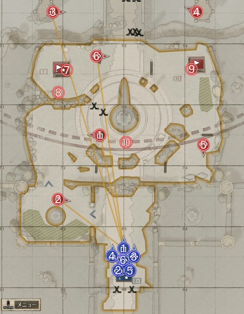 ここでは2回の攻撃で拠点の北側に位置する南西の帝国機関銃座は倒せたものとして進めていきます。