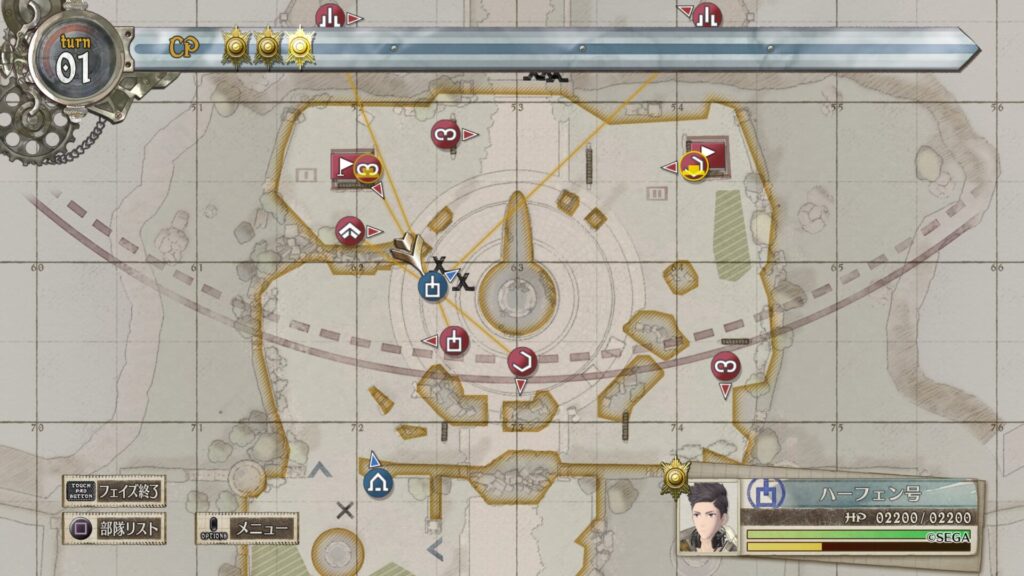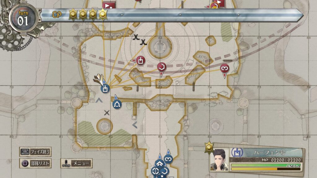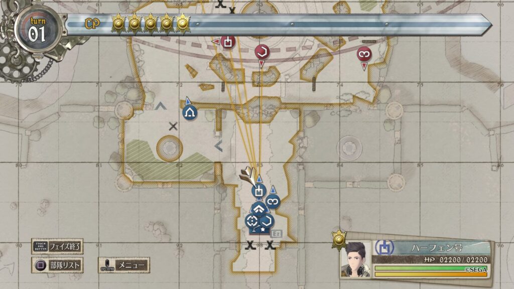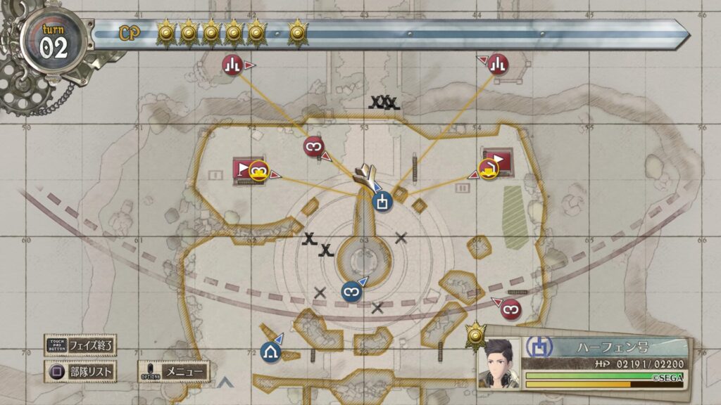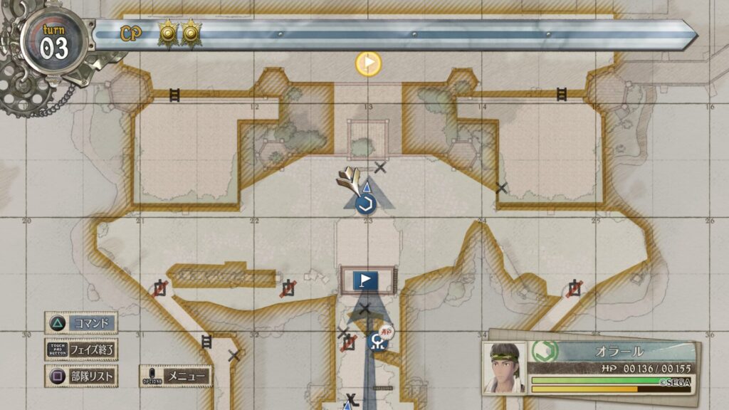 クレスト要塞攻略戦後半なのでクレスト要塞攻略戦前半からターン数は引き継がれています。尚ターン途中で消費したCPは回復しています。