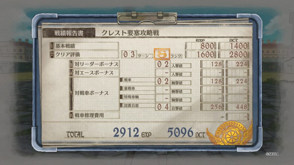 ターン数を極力減らしてクリアすることでSランクを取得することができ、多くの経験値やお金を入手することができる仕組みとなります。