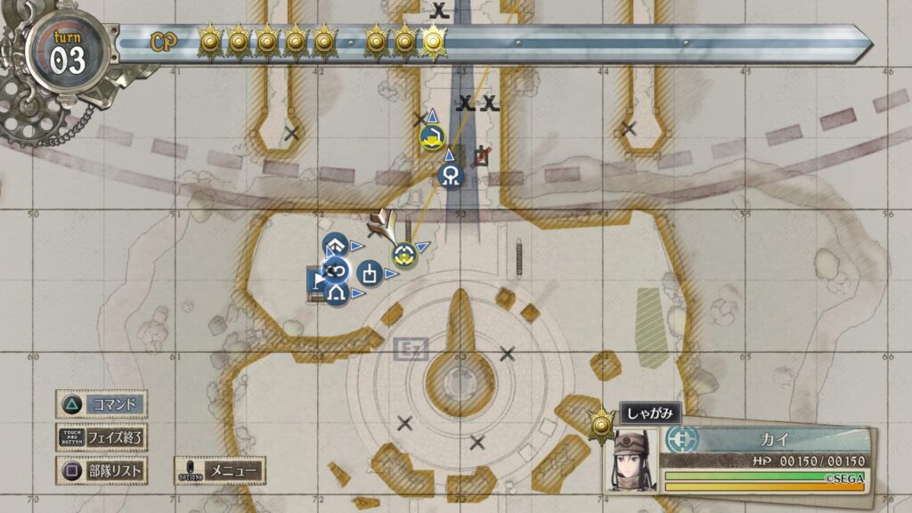 2回行動する必要があるのでここで待機して南東の帝国機関銃座を視野に入れます。
