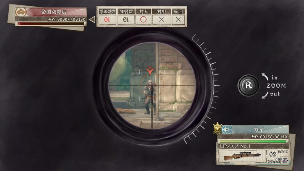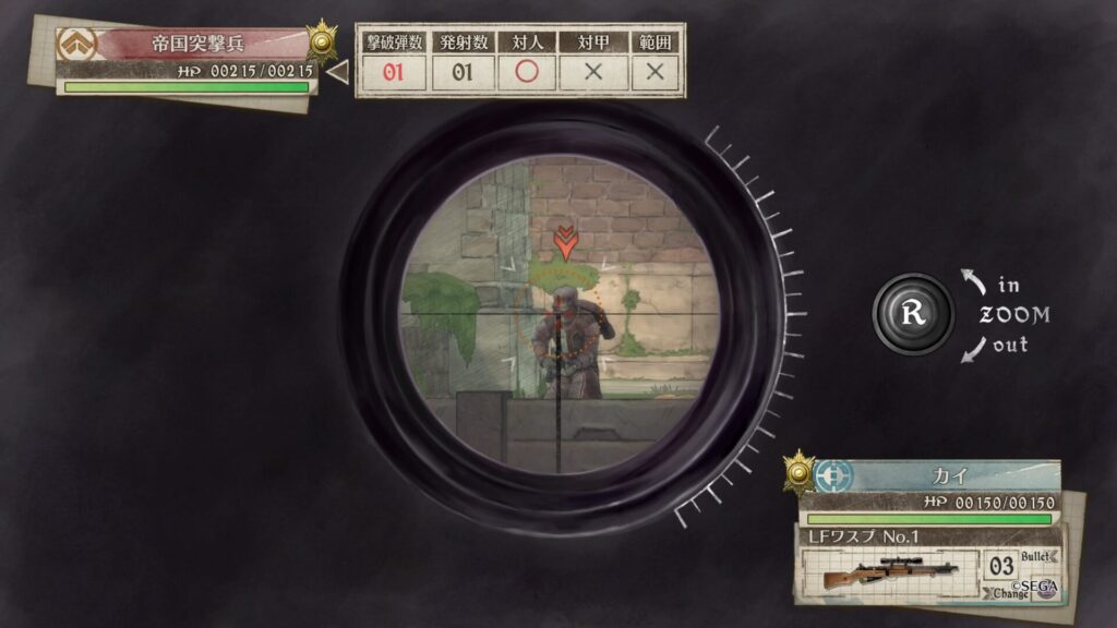敵リーダーの帝国突撃兵が進軍してくるので照準に入らないように待機をします。