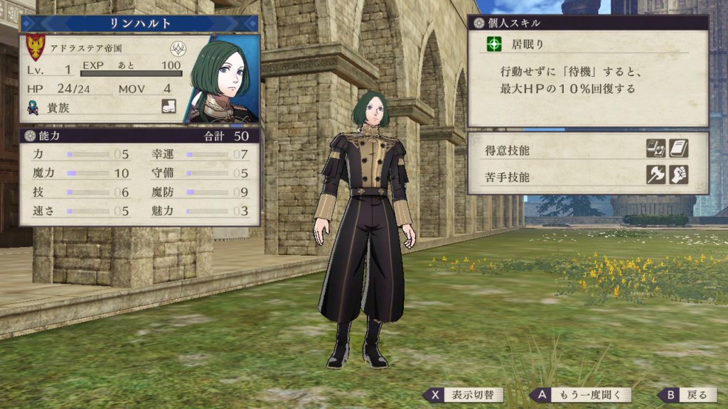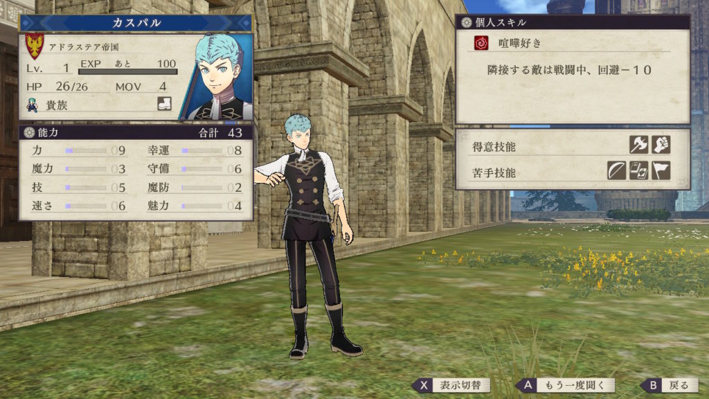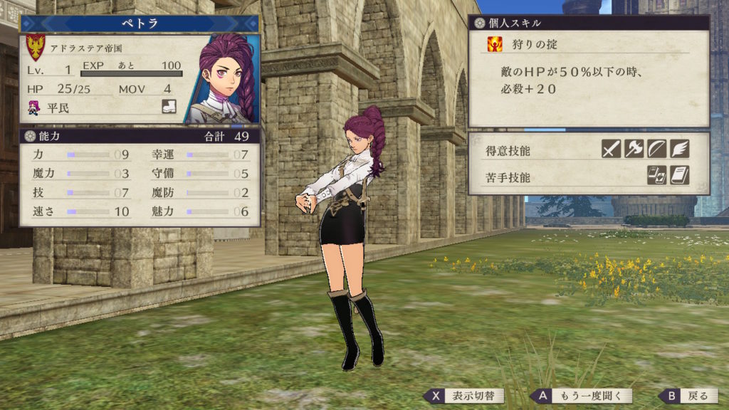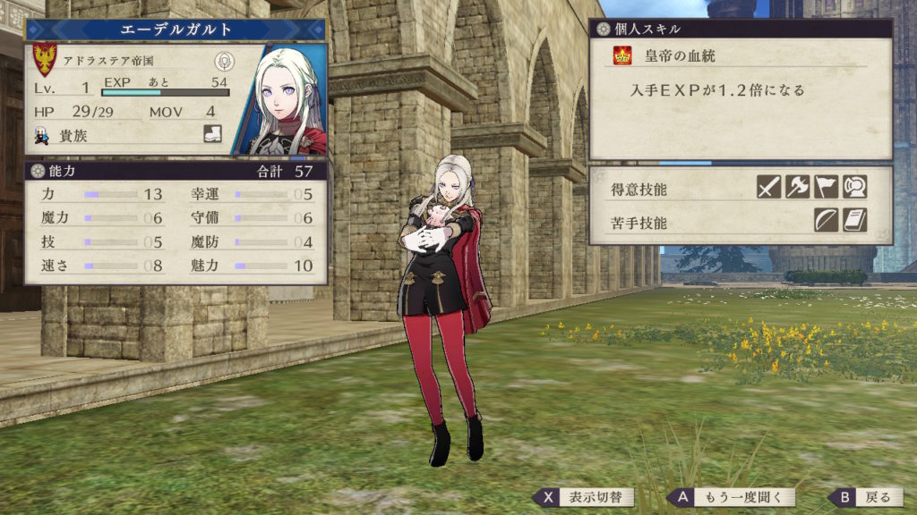 しかし剣術も得意となっており黒鷲の学級では剣士系の兵種ができるキャラが少ないので剣術を伸ばすのも面白いです。