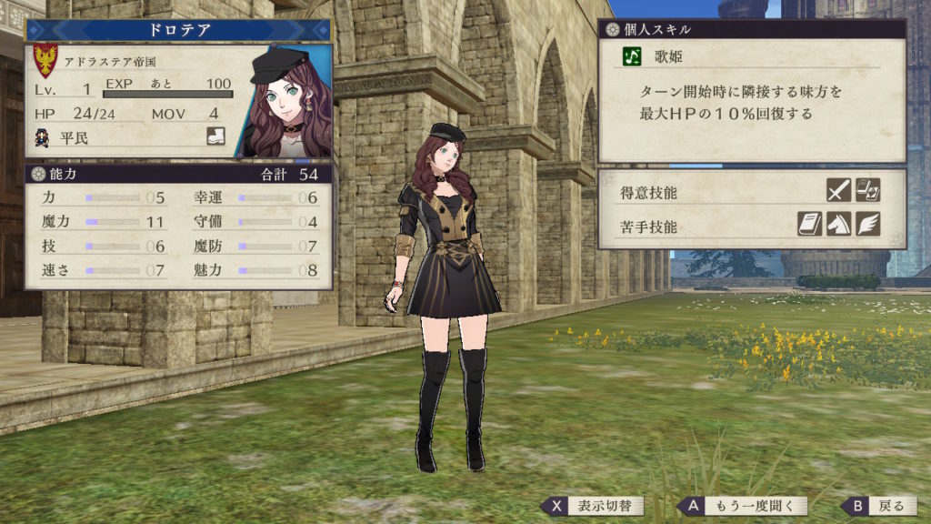 また特殊兵種の「踊り子」にする場合は得意技能である剣術が活きてくるので剣術を伸ばすのも良いです。