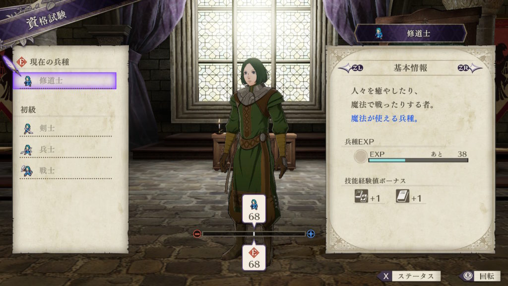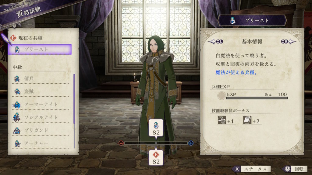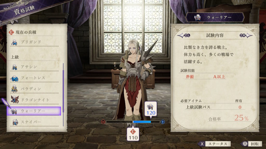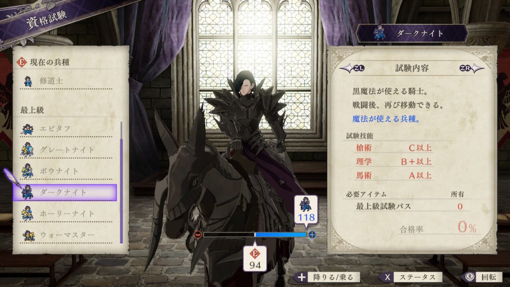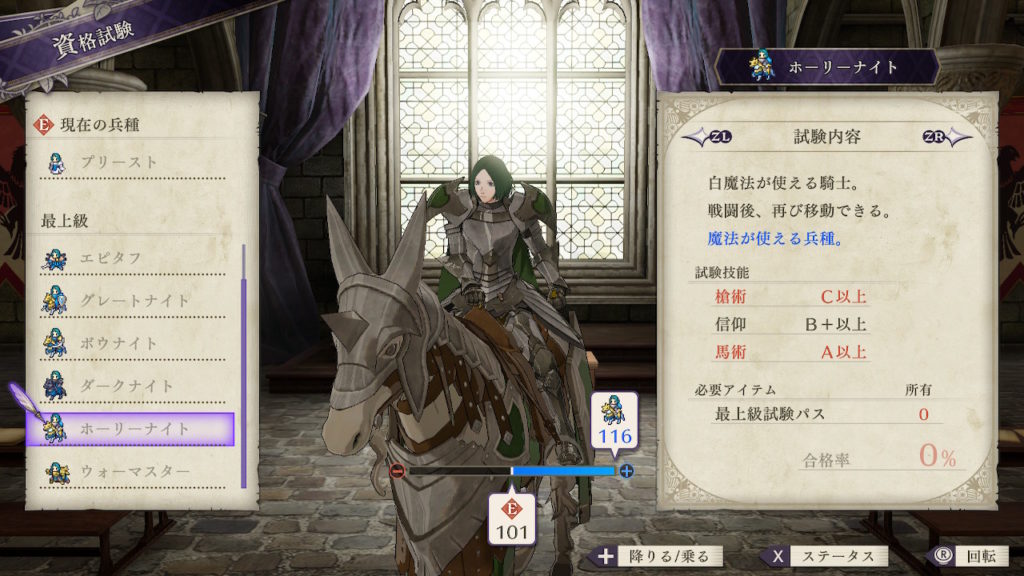 | クラスチェンジ条件 | 槍術をC、信仰をB+、馬術をA以上にする |