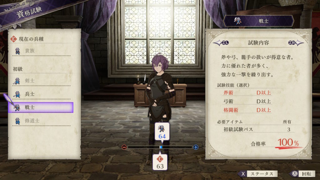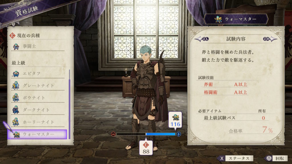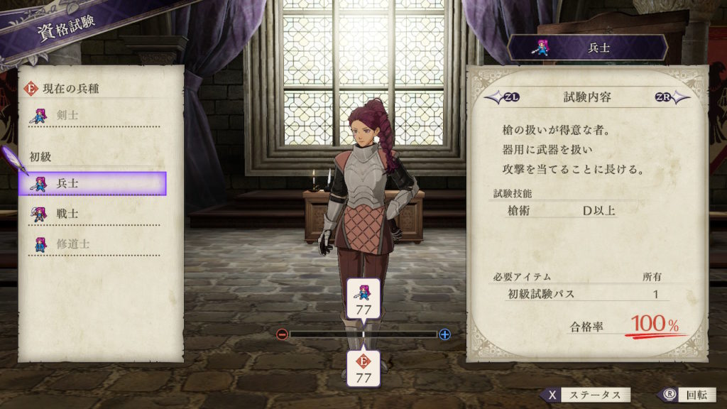 | クラスチェンジ条件 | 槍術をC、理学をB+、馬術をA以上にする |