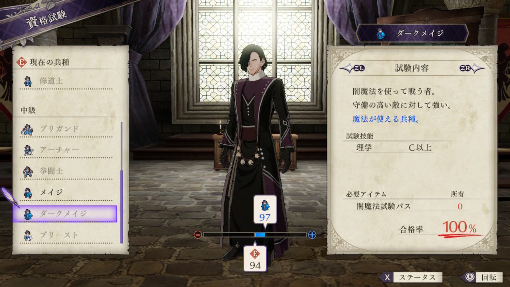 | クラスチェンジ条件 | 理学をAにする、闇魔法試験パスを取得する |