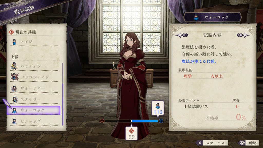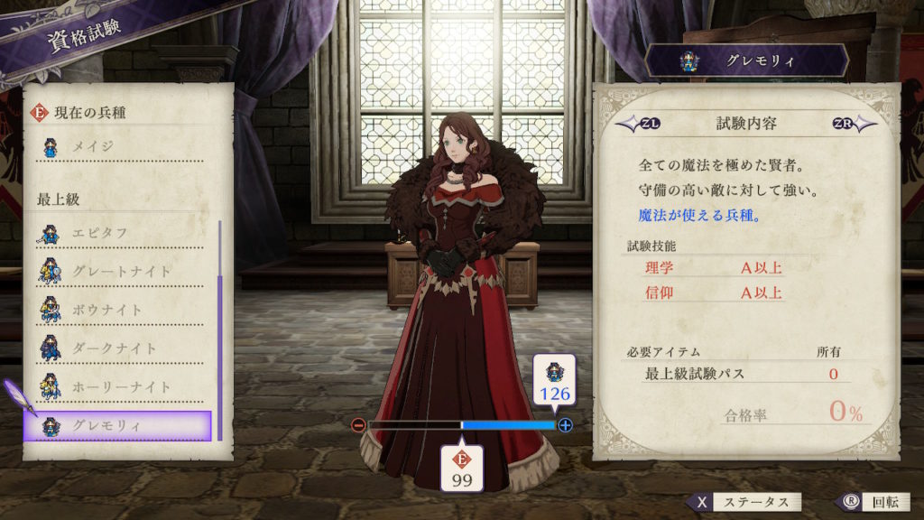 | クラスチェンジ条件 | 理学、信仰のいずれかをDにする |