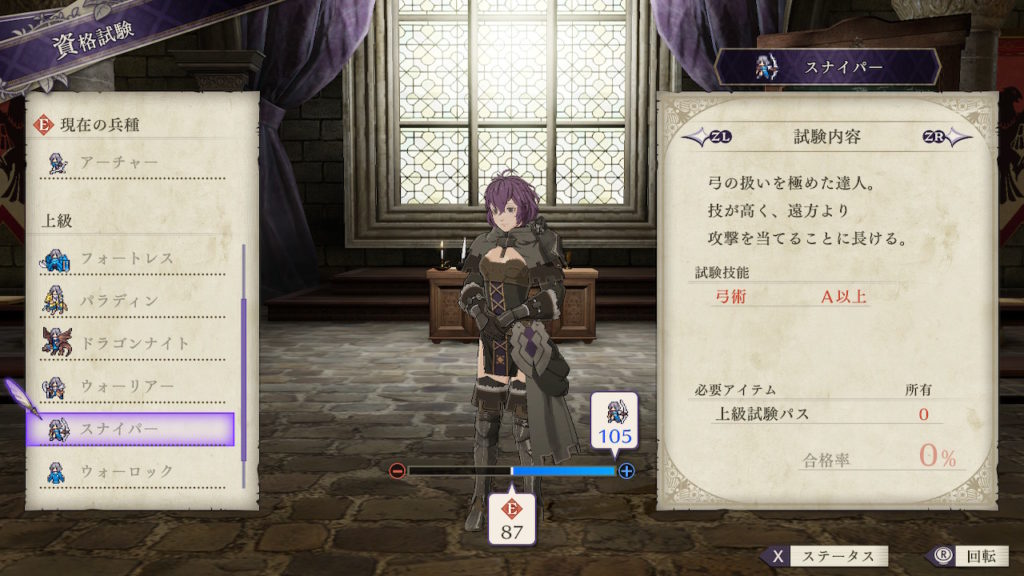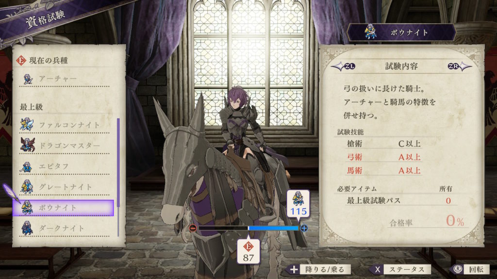 | クラスチェンジ条件 | 槍術をC、弓術をA、馬術をA以上にする |