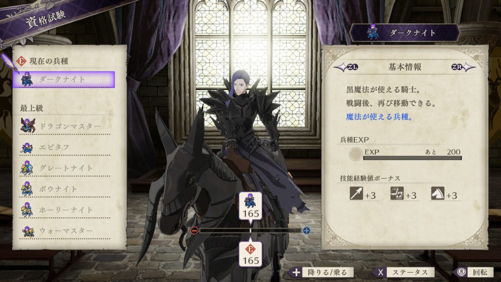 最終的にダークナイトを目指すことができるので槍術や馬術も生かされます。