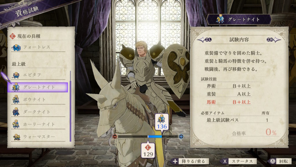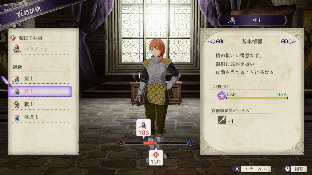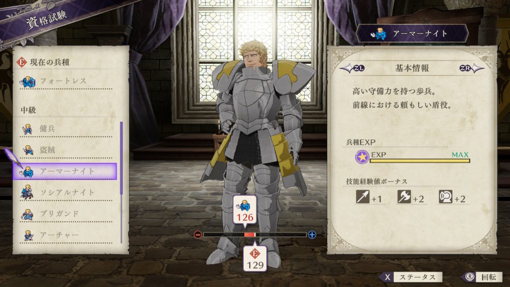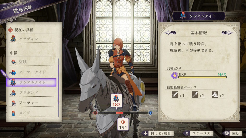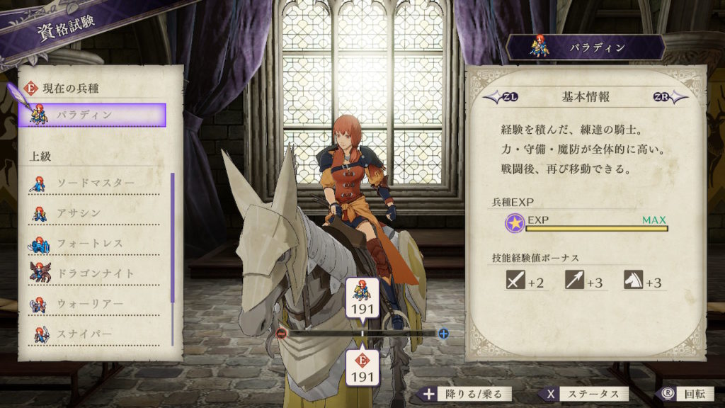 | クラスチェンジ条件 | 槍術をC、理学をB+、馬術をA以上にする |