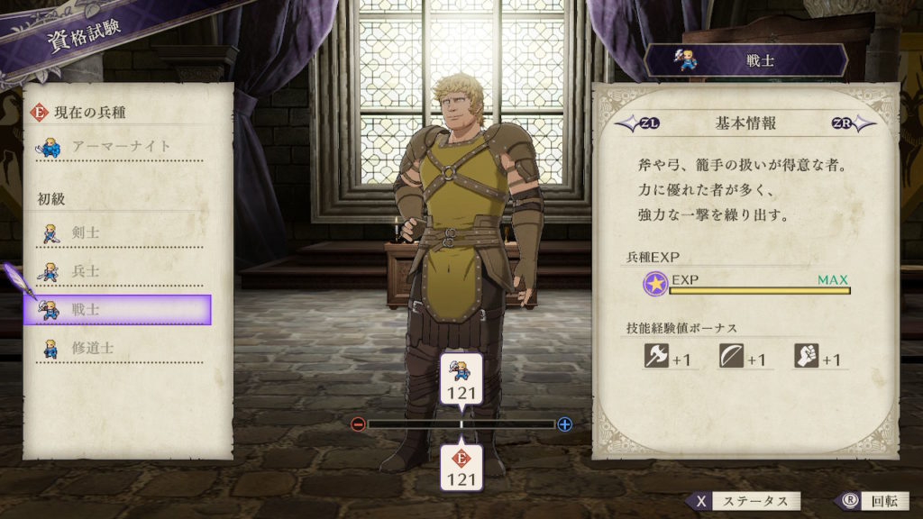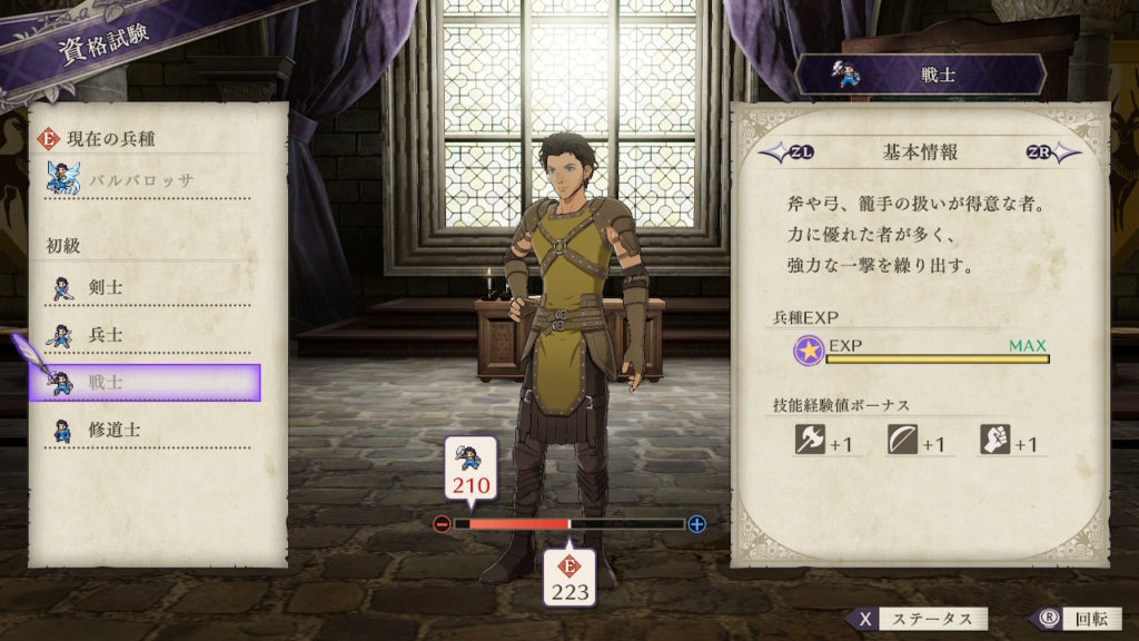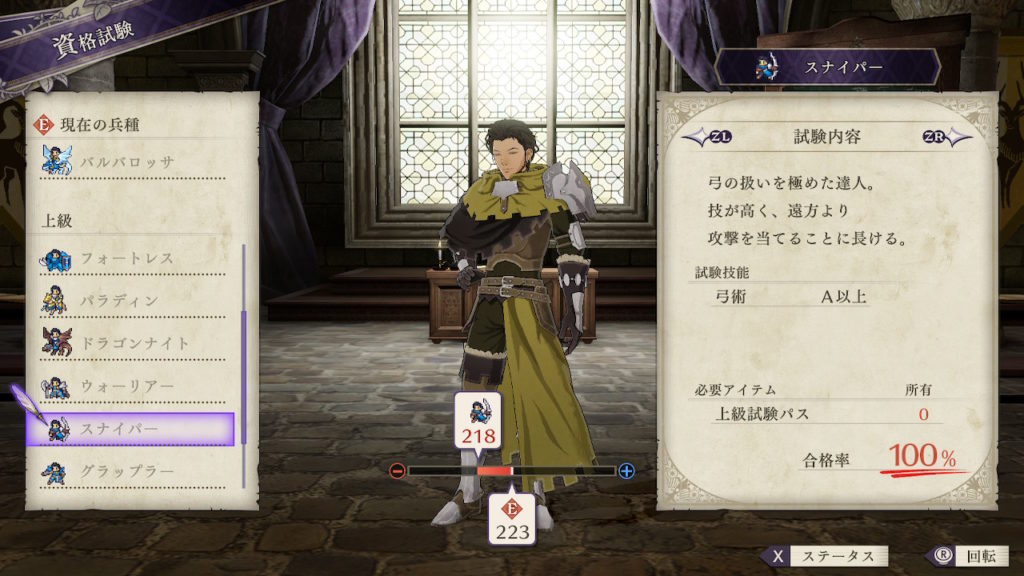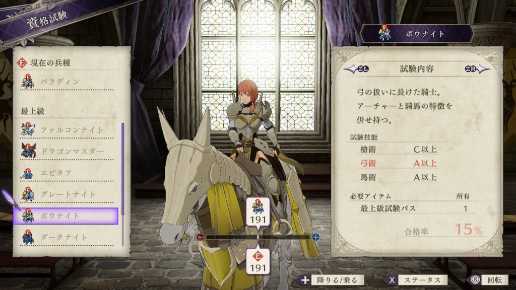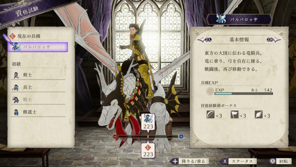 | クラスチェンジ条件 | 槍術をC、弓術をA、馬術をA以上にする |