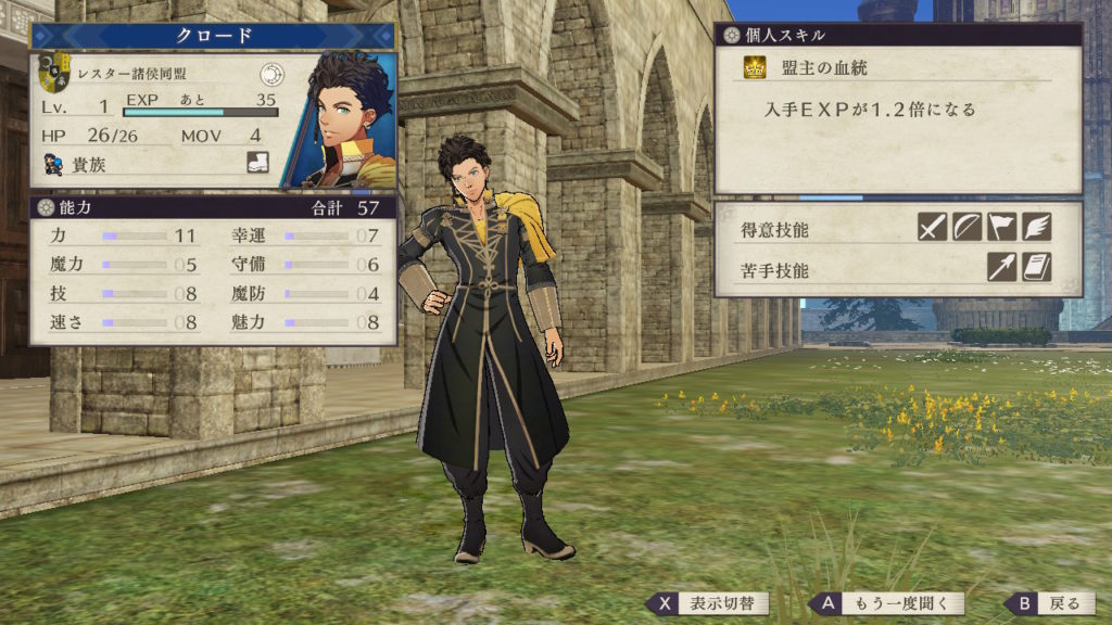クロードは技と速さの成長率が高く、金鹿の学級では級長ということもありずば抜けて優秀なキャラです。