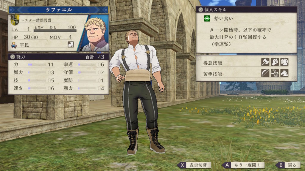 しかし技と速さの成長率が比較的良いので剣を持たせて回避アタッカーとして育成するとバトルにおいて戦術性が向上します。