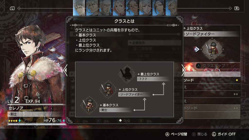 また経験値を得ることでレベルを上げていくのですが、一定のレベルになるとクラスチェンジをすることができます。