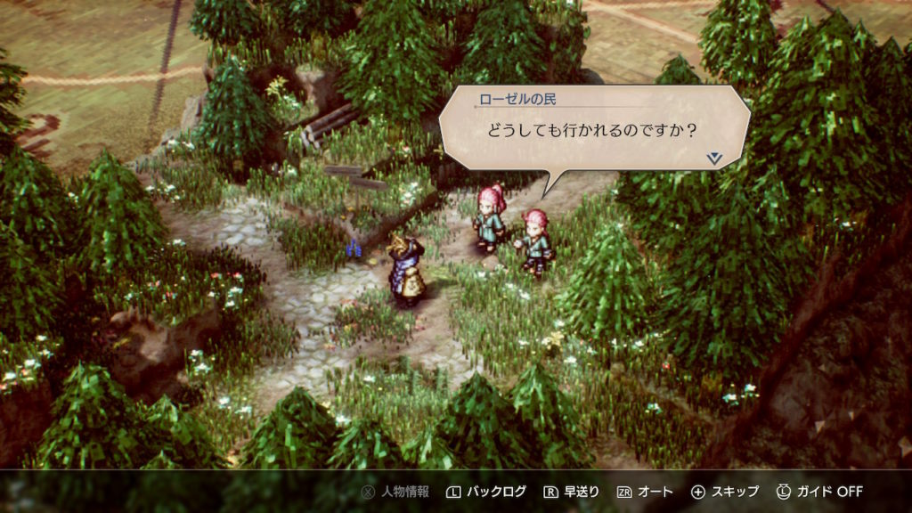 住民との会話でも返答の選択肢が出てくることがあり、その選択肢により会話が変化していきます。