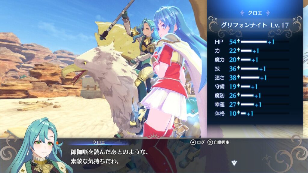 敵に攻撃したり、杖などの行動をすることで経験値を得て100になったらレベルが1上がります。このファイアーエムブレムの面白さは、レベルアップ時に上がるステータスが、設定されている個人や兵種の成長率によって変わるというところです。