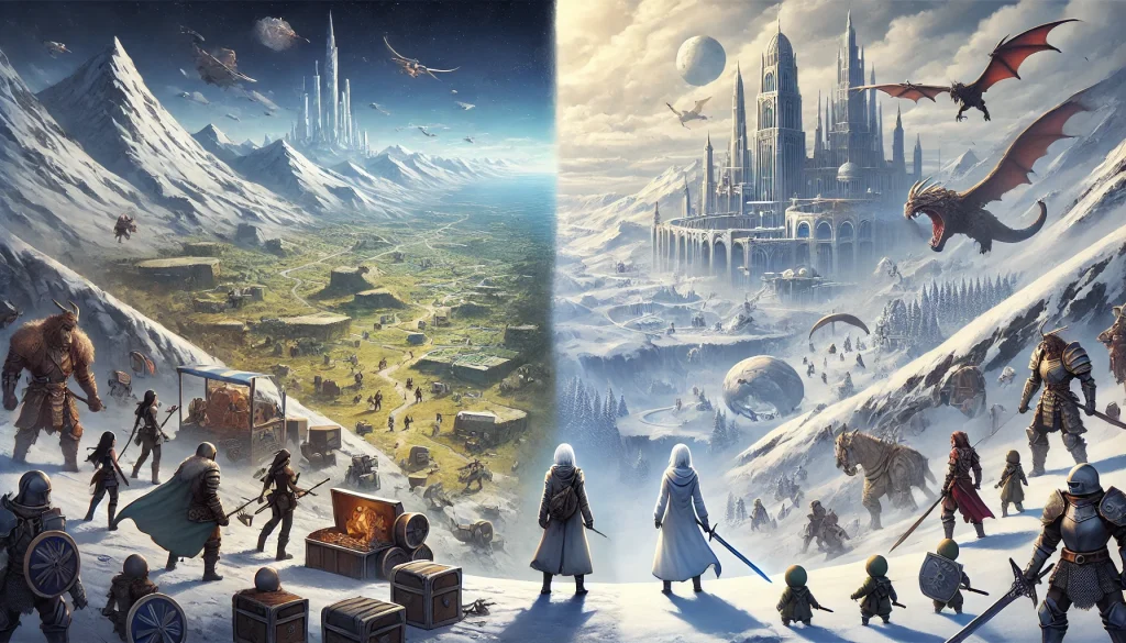 初心者向けに分かりやすくまとめると、スカイリムは「決まった主人公を操作する」のではなく、「自分で主人公を生み出して育てていく」ゲームです。物語の濃さや会話の作り込みはウィッチャー3ほど強くありませんが、そのぶん“自分が主人公になる”感覚はとても強いです。キャラクターになりきって遊びたい人、自分だけの冒険者を作りたい人には、スカイリムの方が圧倒的に向いています。